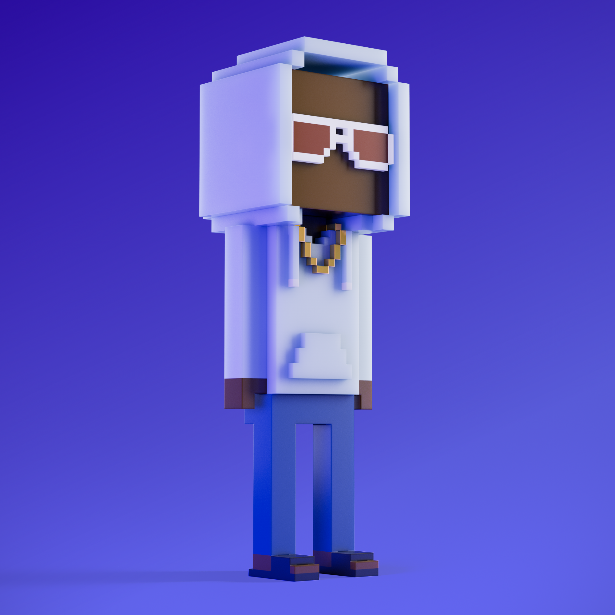 Meebits are 20,000 unique 3D voxel characters created by a custom generative algorithm.