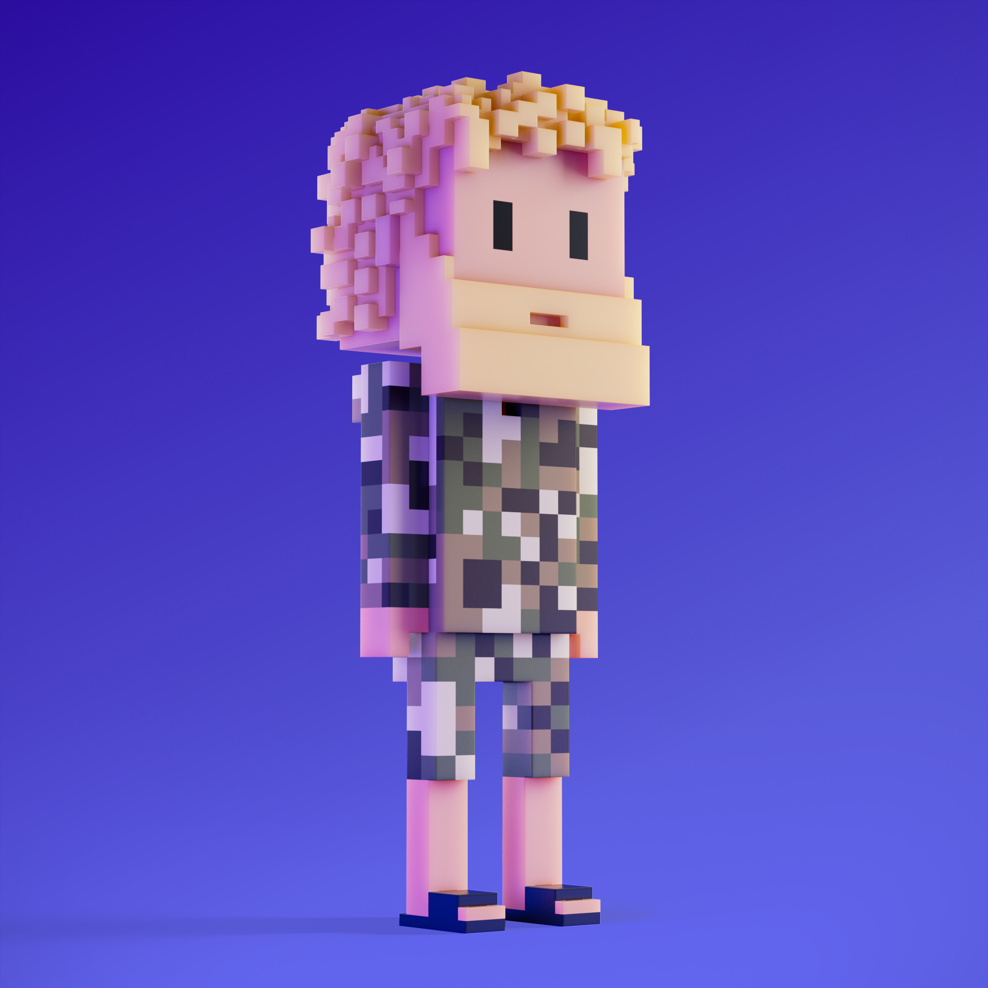 Meebits are 20,000 unique 3D voxel characters created by a custom generative algorithm.