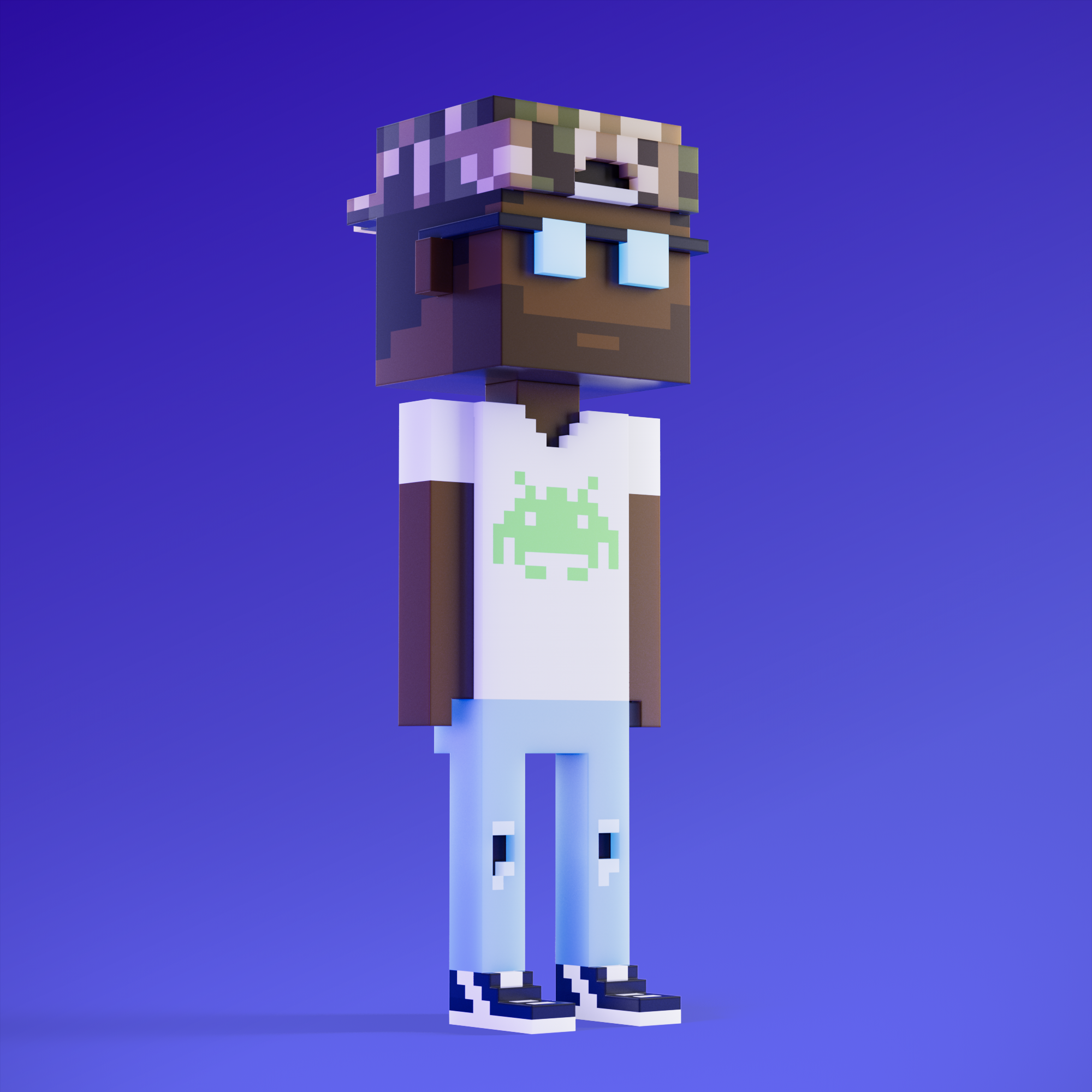 Meebits are 20,000 unique 3D voxel characters created by a custom generative algorithm.