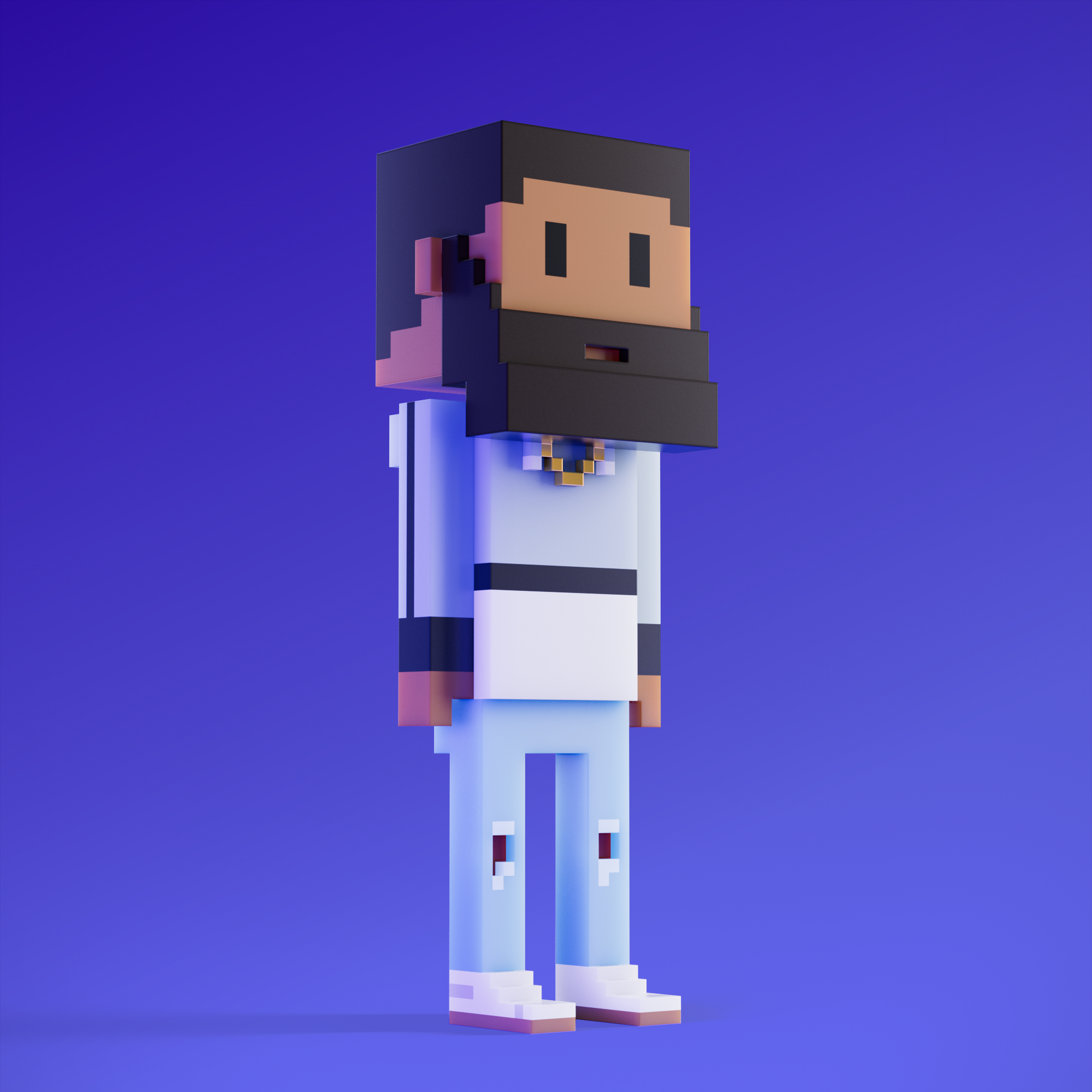 Meebits are 20,000 unique 3D voxel characters created by a custom generative algorithm.