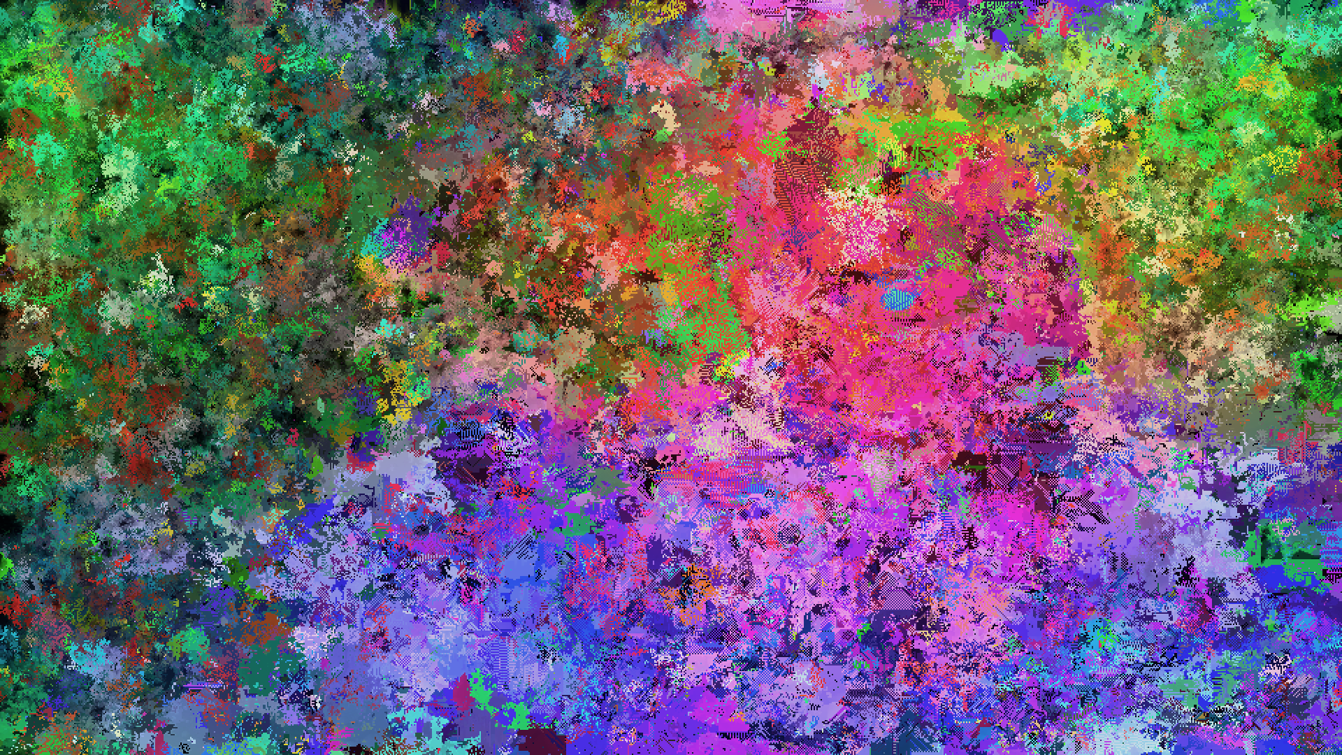 This work generatively unfolds complex interactions that emerge from the intersection of various artificial and natural media on a custom-developed cellular automaton. A cellular automaton divides the screen into numerous cells (unit regions), each of which updates its state according to specific rules—a process that, in this work, occurs in real time. Multiple colors corresponding to different “species” appear on the screen, each proliferating, coexisting, and being eliminated according to diverse rule sets.