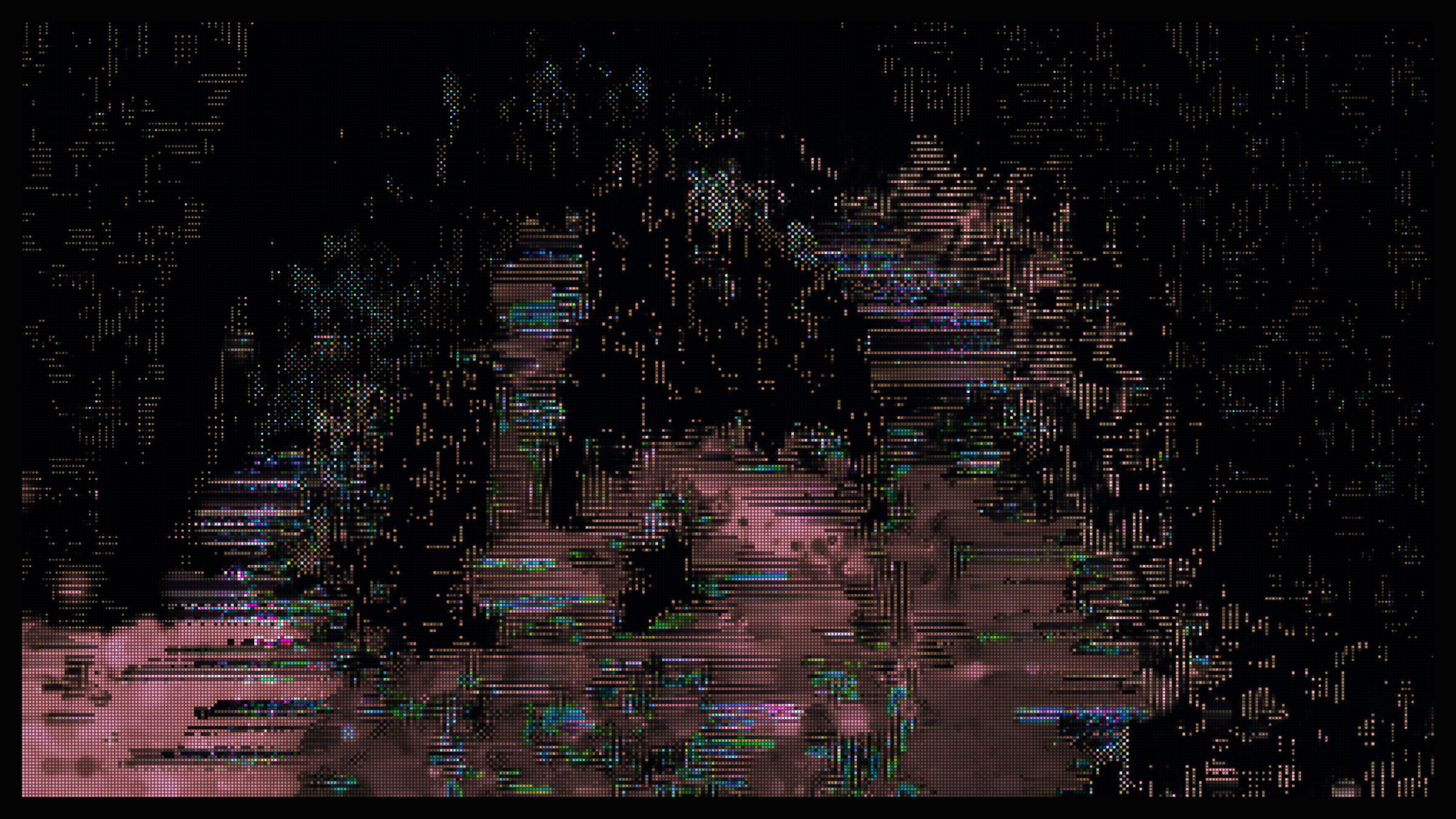 cathedral study is a series of experimental, generative, living paintings. Continually evolving pixelated landscapes evoke ruins, fantastical cityscapes, and cathedrals. Best viewed running in real-time on a large screen. Press ‘f’ to cycle through full-screen options.