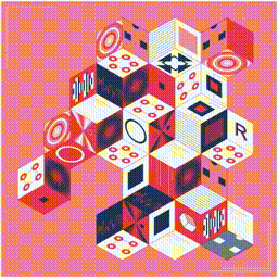 Project Description: This project symbolizes generative artists united by the common idea of Art Blocks. Each panel on the block is a small generative art piece with several random parameters that live their own life while simultaneously being part of the composition.