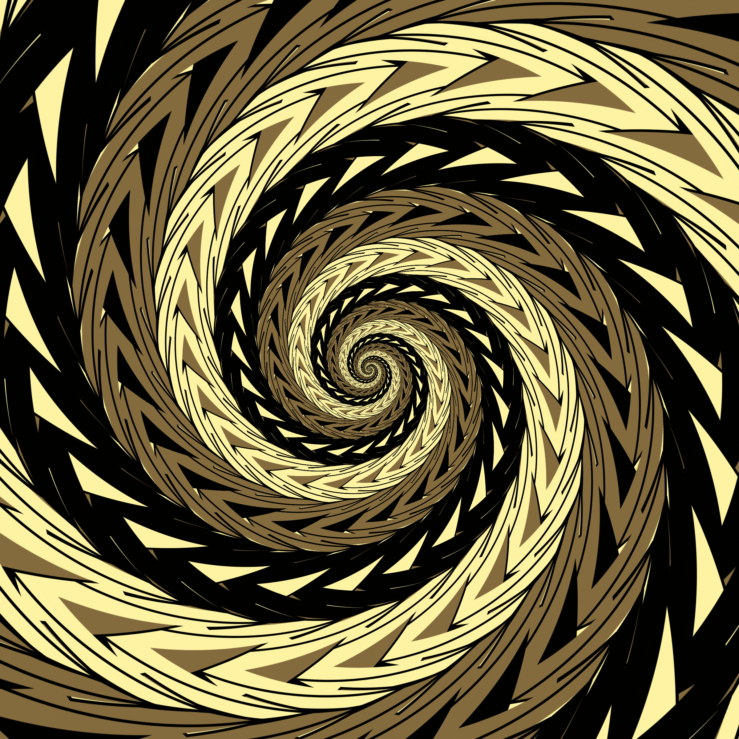 Project Description: Escher-style tiling of a plane, gone wrong. Each image spins hash-driven colors, shapes, and symmetries into infinity. Fly through the spiral as it morphs between beauty and madness. Keys: F = Fly through/back, D = Distort on/off, Esc = Stop, S = Save image.