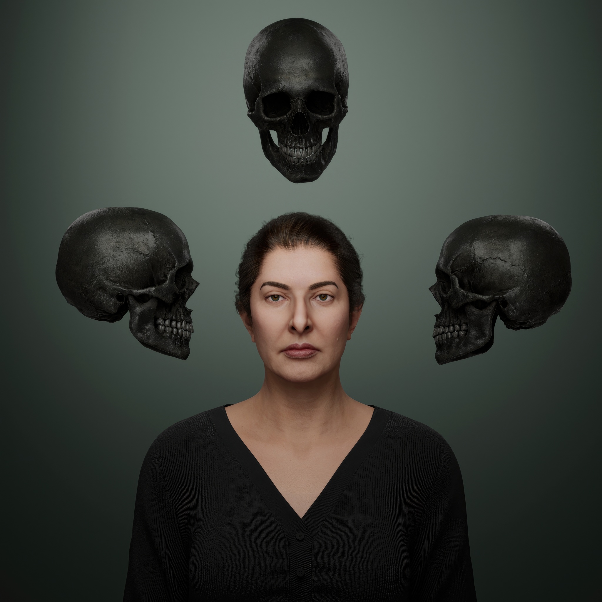 From the outset, Marina Abramović's practice has pushed the limits of experimental art, with actions that function as purification rituals in her quest for an absolute freedom. This work belongs to the broader series titled The Balkans and is deeply intertwined with her performance Nude with Skeleton. The piece draws inspiration from an ancient Tibetan tradition, where monks meditate on impermanence by sleeping in cemeteries alongside decaying corpses. In Self-Portrait with Skeleton, Abramović confronts the inevitability of her own death, using the skeletal form as both a companion and a mirror.