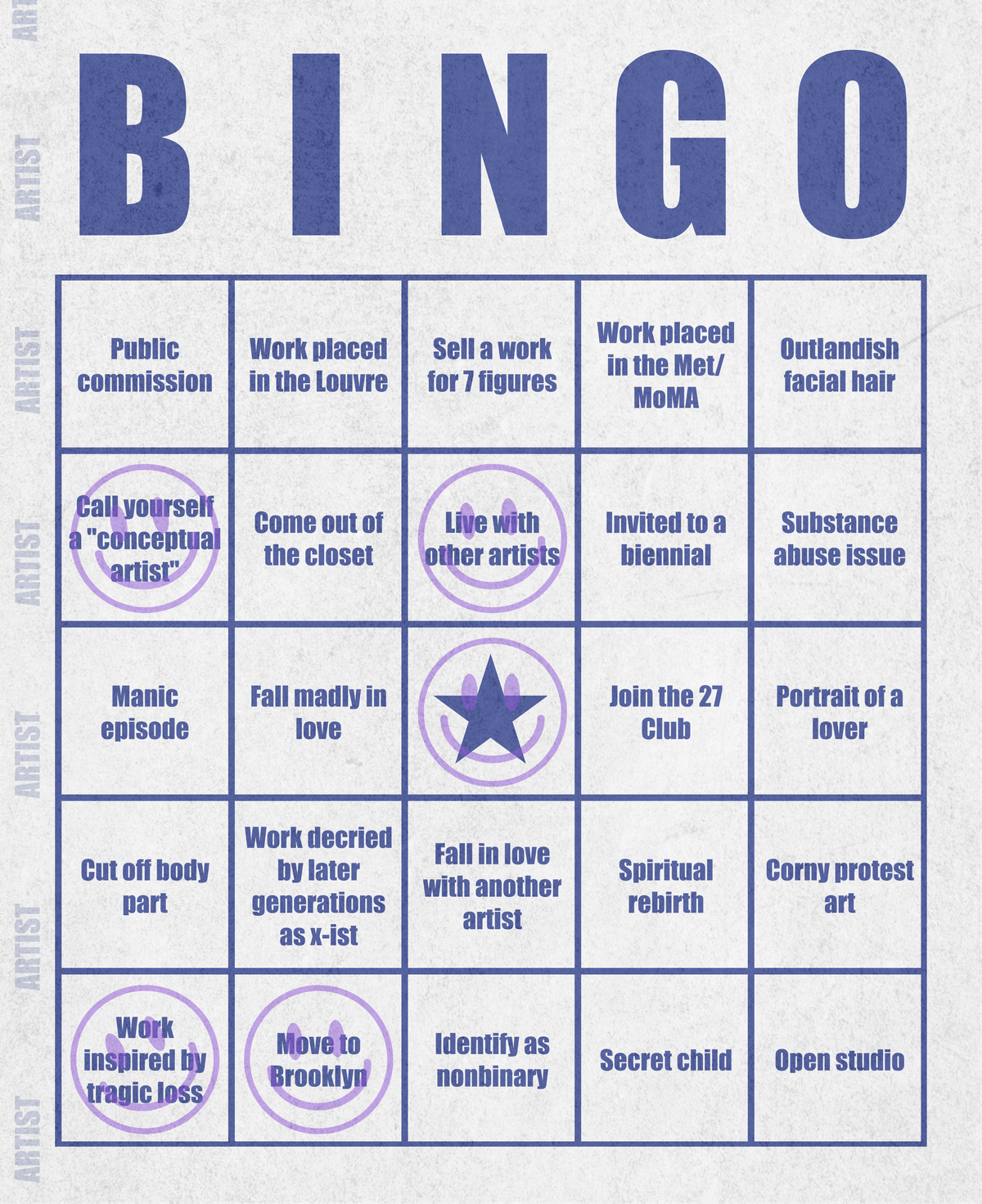 Artist Bingo Card #84 by Kevin Esherick | Verse