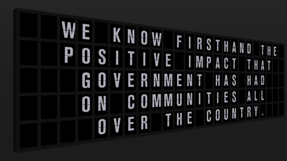 Appropriate Response: WE KNOW FIRSTHAND THE POSITIVE IMPACT THAT GOVERNMENT HAS HAD ON COMMUNITIES ALL OVER THE COUNTRY. by Mario Klingemann | Verse