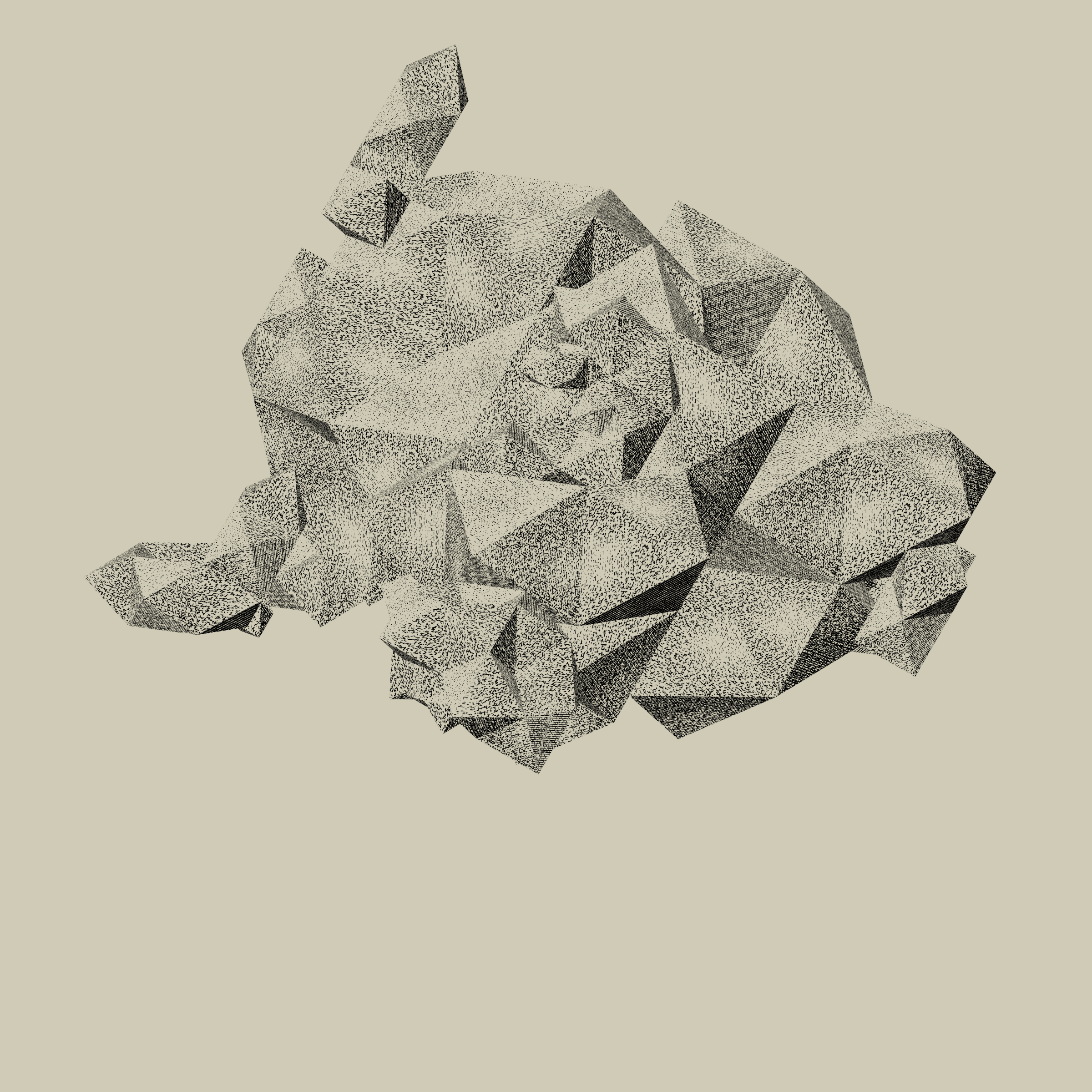 Over the years, the studio has indulged in a number of obsessions. One is the conviction that history is a generative source with which to constantly entangle. Whether it is through stories, characters, techniques, or events, history acts as a medium active with properties that constantly reshape and transform our concept of the present. We look back to move forward, like hitching a ride. It is here that we encounter Albrecht Dürer (1471-1528) and his masterpiece Melancholia I (1514) to inspire a deep dive into the process of engraving as a representational technique reinterpreted through the contemporary medium of code. By scratching metal away from a plate, an inversion of conventional drawing, engraving allowed a work of art to be reproduced and disseminated widely. In addition to the piece’s masterful delineation, its allegory resonates with us as well. In Dürer’s time melancholy was associated with insanity but also with creativity. In the engraving, the winged personification of melancholy -- the work is widely regarded to be a self-portrait of the artist -- is surrounded by the tools and elements of geometry. For Dürer, as for a handful of others who came before and after, who test the porous borders between art, science and religion, geometry is a vehicle for imagination, a shadow of the divine and a portal to the infinite.