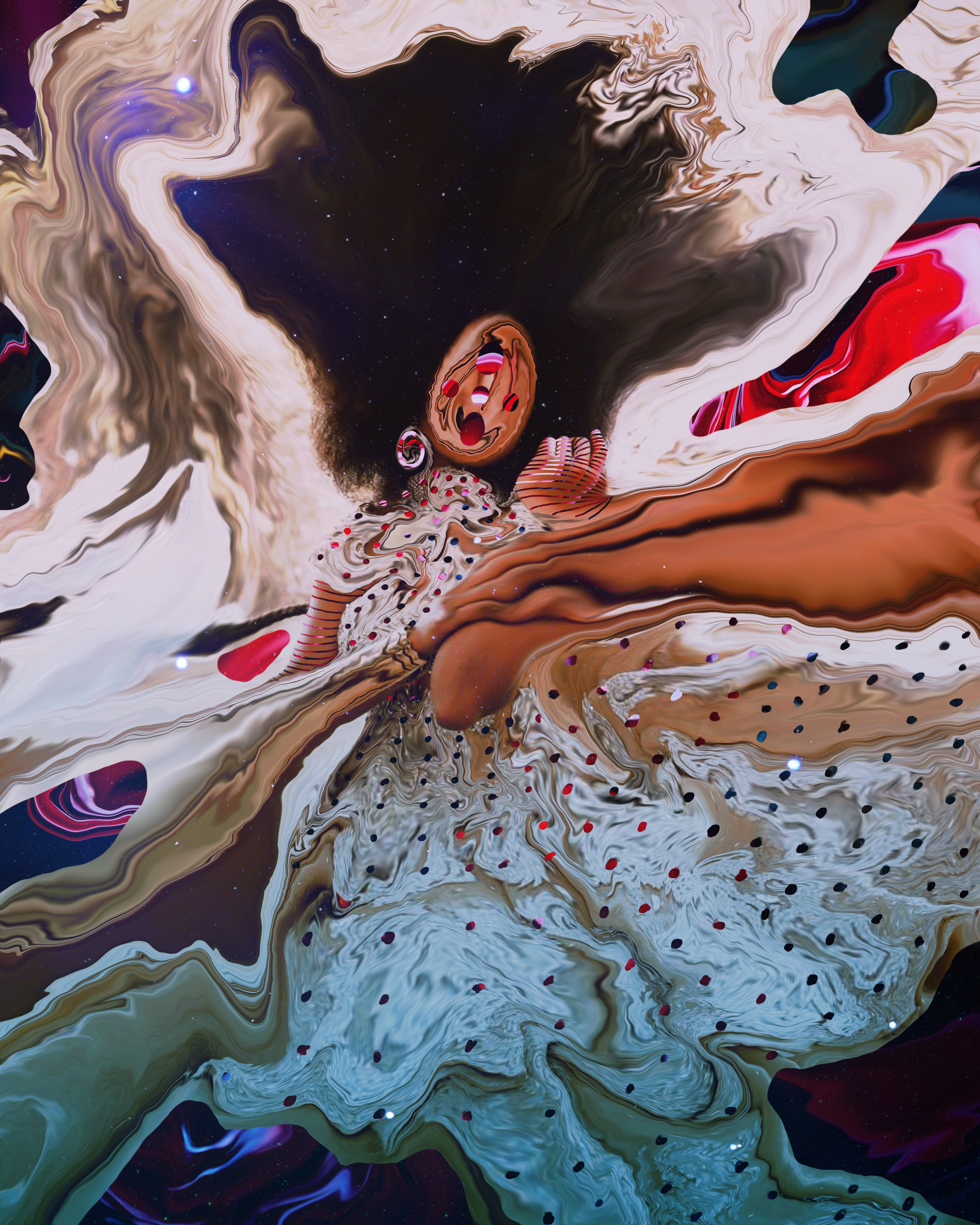 AngelDust embodies the profound lost history of successful black women within society and royalty. I was inspired by the cosmos and how the brilliance of impactful moments were kept hidden from our history classes. Overall, I wanted this piece to be about empowerment, opportunity, and gracefulness.