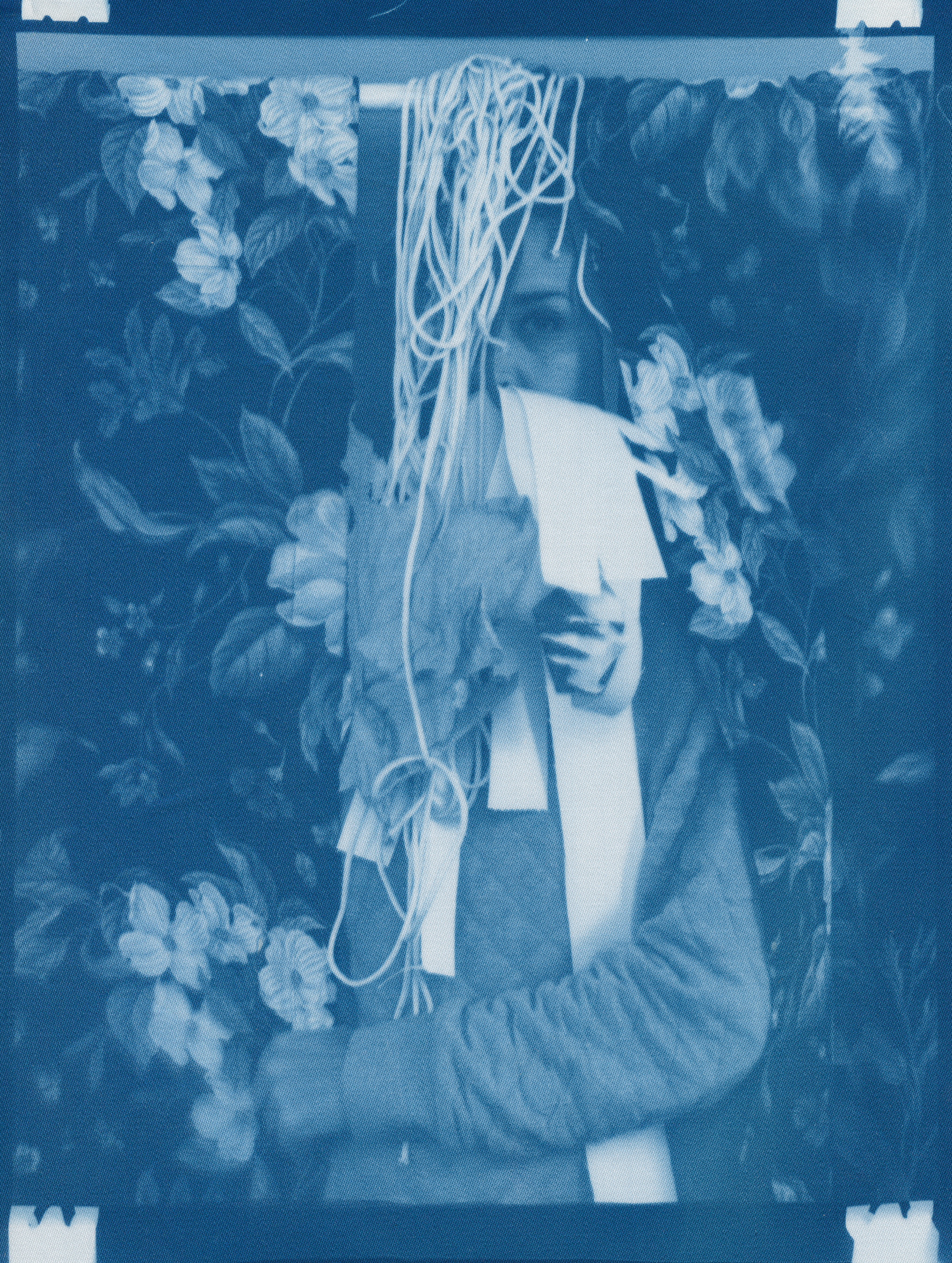In the spring of 2020, panic surrounding COVID-19 erupted and mandatory shelter in place orders went into effect, forcing me to abandon long-planned portrait shoots, travel, and work in progress in my art studio. I found myself in a 340 sq ft apartment in a Bay-area neighborhood that was emptying by the day. The buzzing silence was profound. Two weeks into isolation, my drive to connect with others and make portraits only amplified. With no safe way to do so, I spontaneously turned the camera on myself to create a portrait. I printed it as a cyanotype, a simple nineteenth century photographic process that was only feasible due to the basic materials I happened to have on hand—a budget printer, transparency film and a package of fraying sheets of cotton pretreated with cyanotype chemicals. At first, I exposed the prints in the unpredictable spring sunlight coming through my third floor apartment window. As the seasons changed, I went on to make them in a garden, on the top of a car, or a patch of wobbly concrete tiles. I rinsed them in water and varying shades of blue emerged. I created a daily self-portrait using this technique for more than a year.