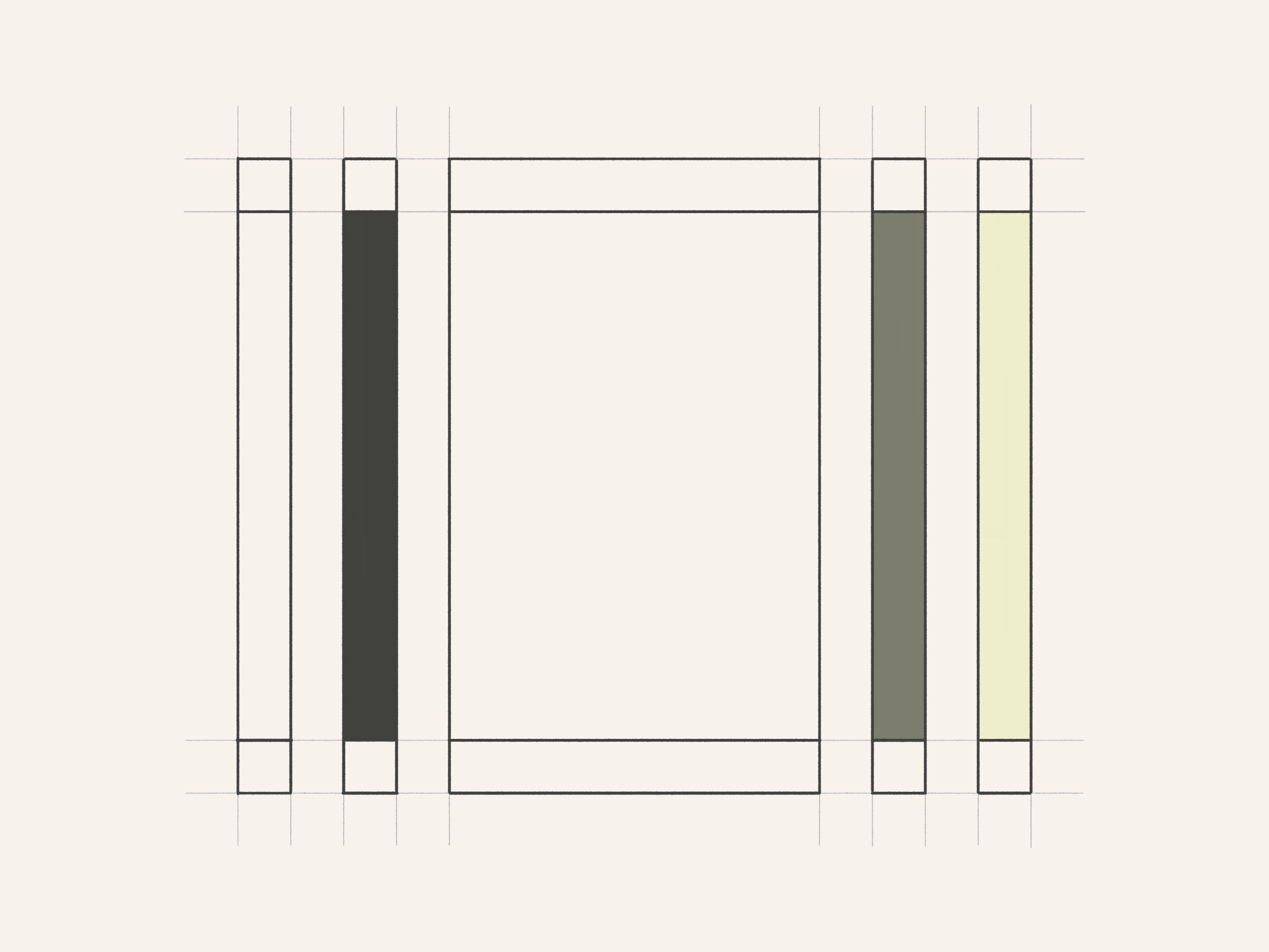 Drawings for a Monument is a generative series exploring the development of a minimalist monument to Art Blocks. Each drawing pays tribute to a different project from the Curated collection, examining its color expression within a linear framework. The algorithm translates the chromatic identity of each Curated project into hand-drawn geometric studies with pencil guidelines, painted rectangles, and black outlines.