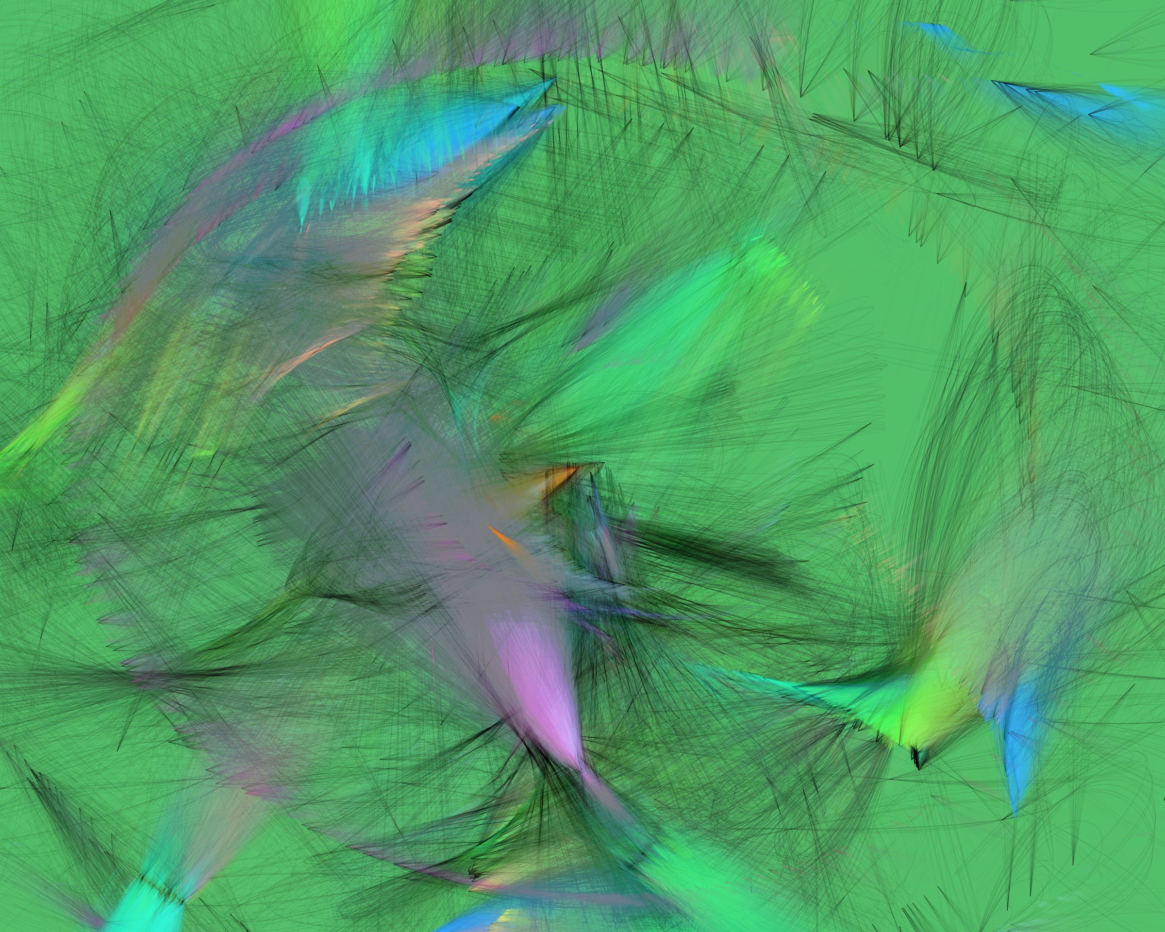 Inspired by my encounters with neolithic cave paintings in Europe and indigenous pictographs flanking Canadian lakes, Mazinaw hints at etchings, drawings, and anthropomorphic forms. While Mazinaw draws on expressionists from Wassily Kandinsky to Norman Lewis, it takes abstraction one step further: each piece is constructed by the artist indirectly, via a generative code, allowing the emergence of new undreamt-of forms.