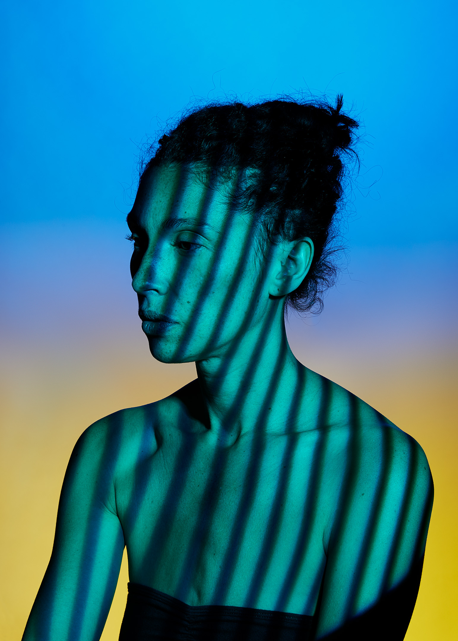 Assembly presents Ursula by Hannah Whitaker. Inspired by science fiction tropes like digital servants and sex robots gendered as female, this project playfully critiques how the male gaze has created “female” service-oriented machines even in the AI assistants that many of us employ in our daily lives. These straight, studio shots are mostly of the artist’s friend who becomes “Ursula,” named after the most famous Ursulas—the Sea Witch in the Little Mermaid, feminist sci-fi writer, Ursula K. Le Guin, and sex symbol Ursula Andress. At once retro and futuristic, these photographs reflect the vernacular of the tech industry and the stereotypical “women” that this male-dominated space creates. This work was published as a photobook in 2021 in collaboration with writers Dawn Chan and David Levine. Levine writes, “The world asked for me to be this way. Highly reflective…Nonporous. A contemporary saint, my body covered in USB ports, surrounded by photographers. Click click click click click.”