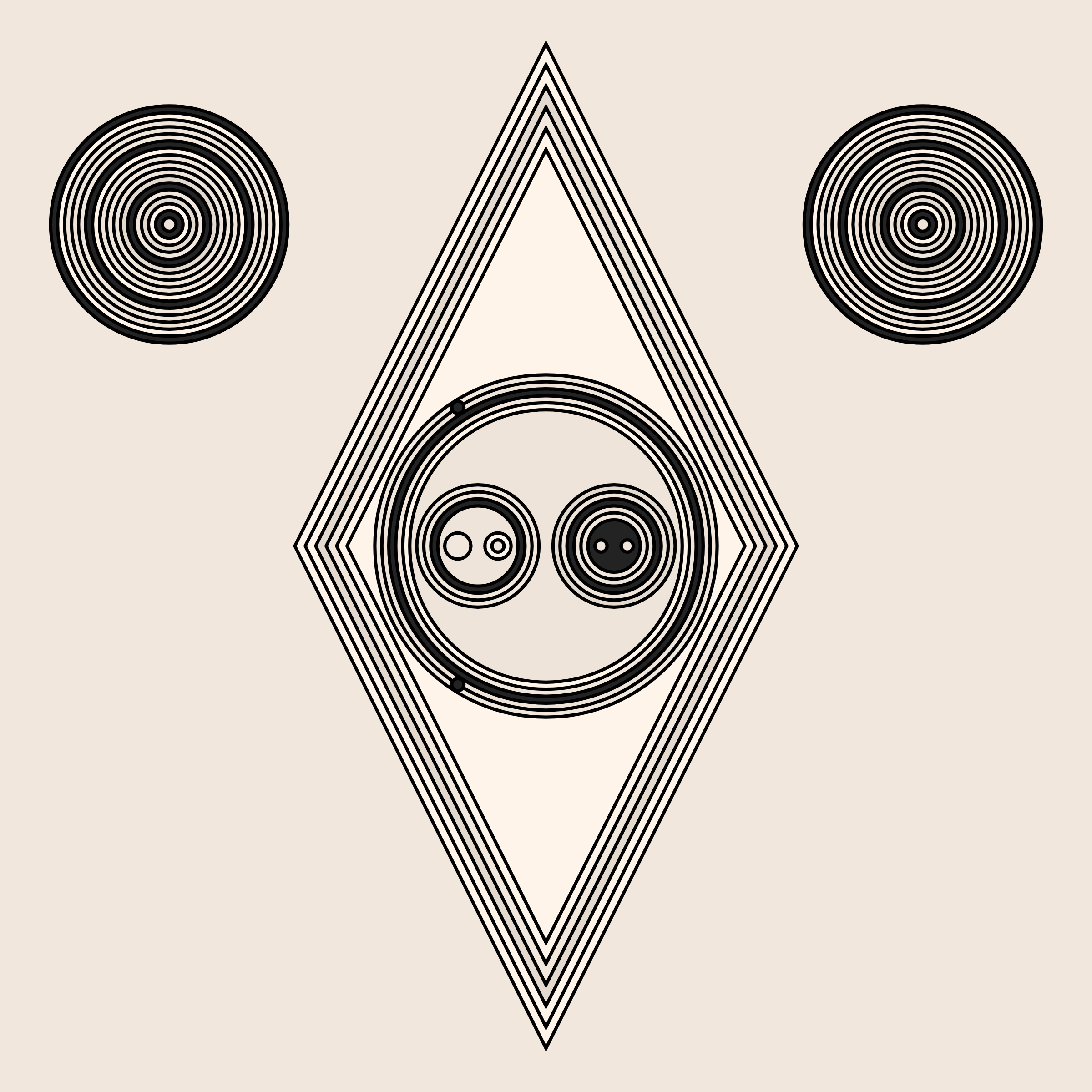 Project Description: A study in composition using simple shapes and layout rules. When repetitive patterns fail, and the symmetry isn't quite right, the images are strangely evocative. Somewhere between art deco, pop art, and sci-fi.