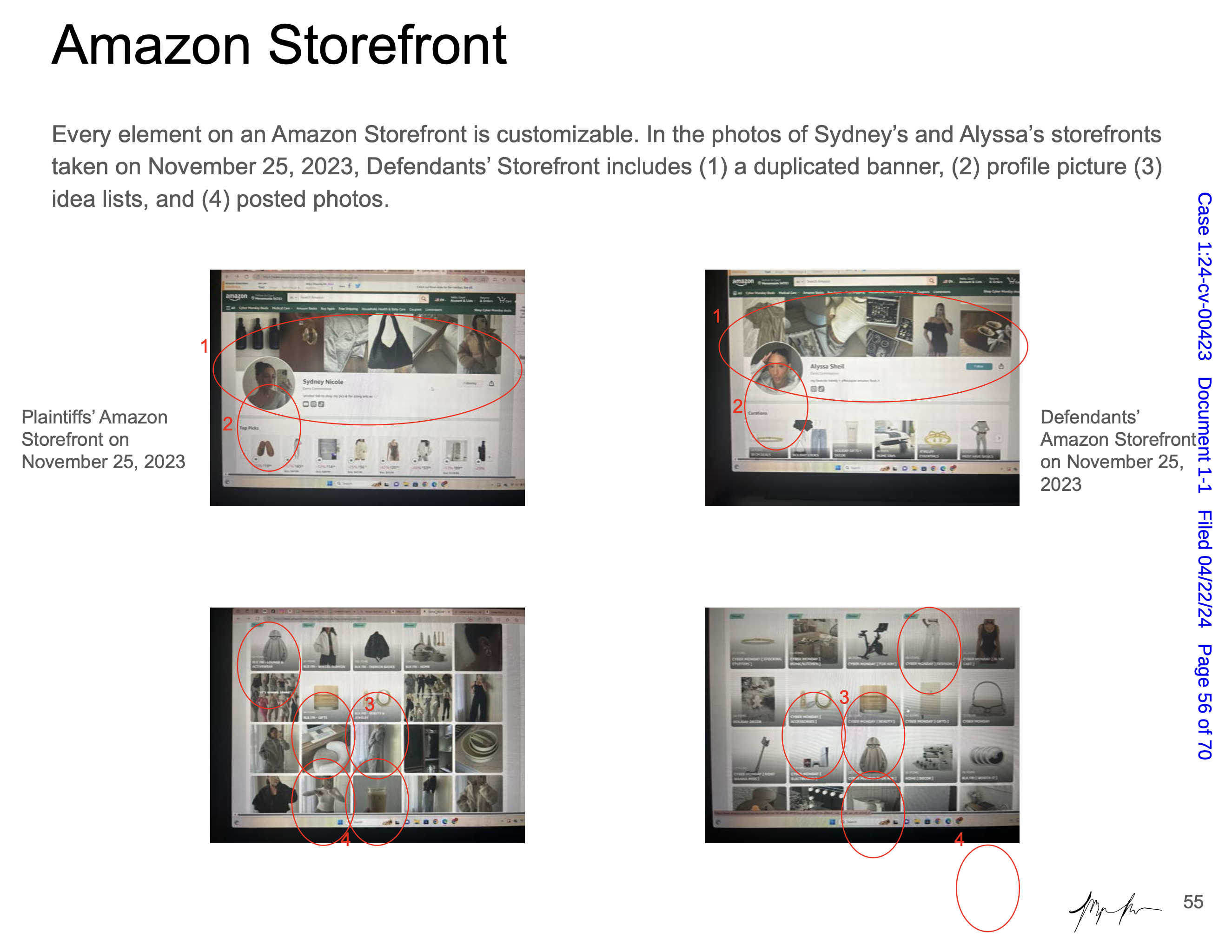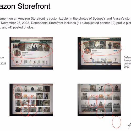 Maya Man is an artist focused on contemporary identity culture on the internet. Her work examines dominant narratives around femininity, authenticity, and the performance of self online. In Hard Copy she examines a lawsuit between influencers Sydney Nicole Gifford and Alyssa Sheil, colloquially known as the “Sad Beige Lawsuit,” in which Gifford accused Sheil of replicating her content—from decor, to clothes, to nearly every aspect of her online persona. Each artwork is a page from an official legal document, taken directly from court filings and electronically signed by the artist. Presented as side-by-side comparisons and complete with screenshots from various social media platforms, websites, and hyperlinks, the pages fit naturally within Man’s work, even though the artifacts themselves are, in effect, stolen.
