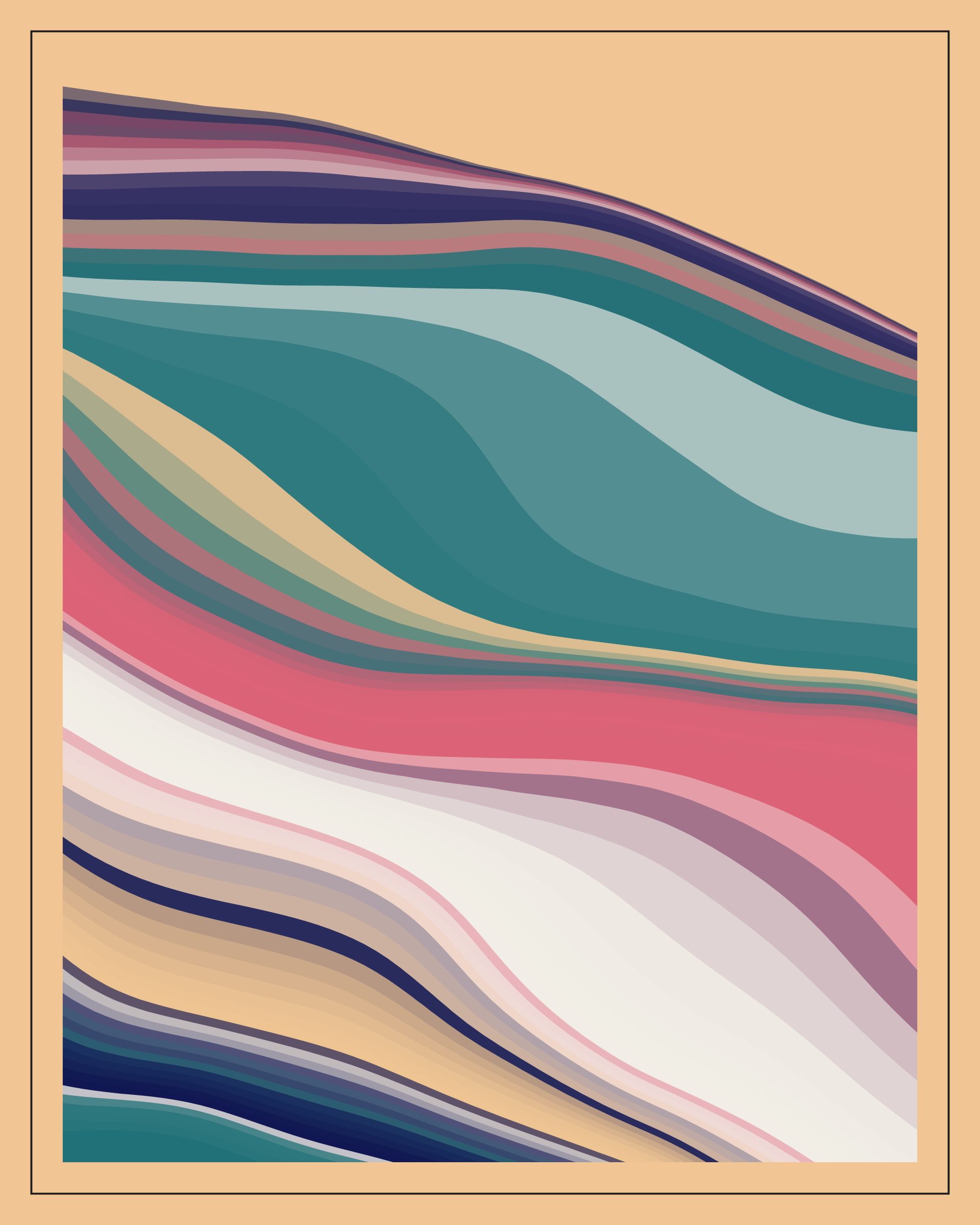 Project Description: Strata explores the field of geology and more specifically rock layering. In the physical world, layered rocks form when particles settle from water or air. These layers of sedimentary rock are called strata. In the digital world, the Strata algorithm generates layer upon layer of colors to draw the impression of rock layering. Each token hash decides the unique path Strata takes through the generative space to the final output.