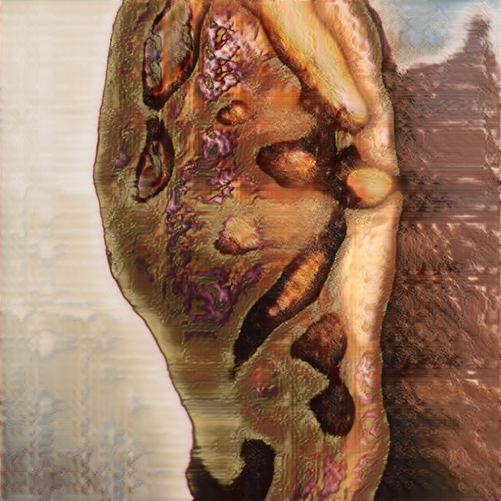 Artwork generated by a GAN trained on thousands of nude portrait oil paintings.