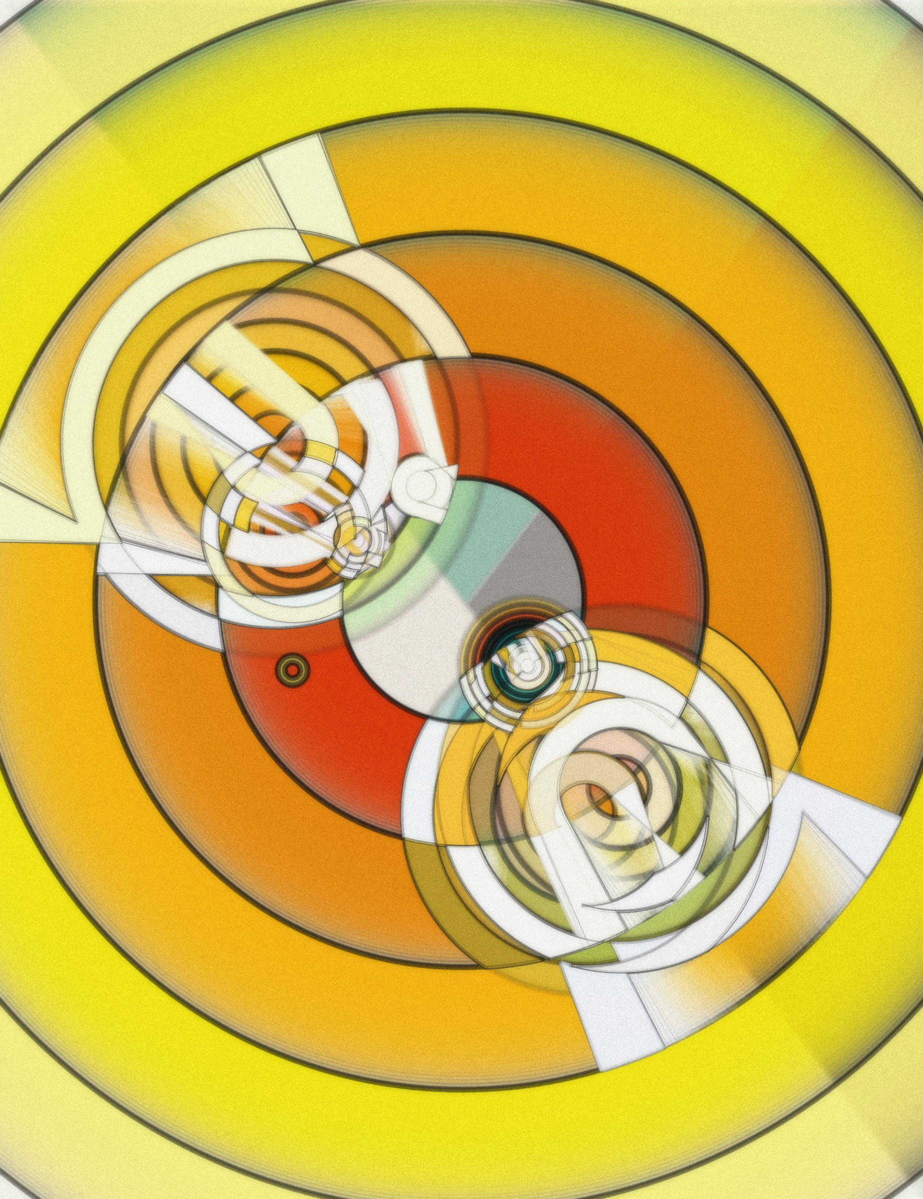 Project Description: Our lives are scattered across several time scales, and the meaning of every event that takes place depends on the time scale that we choose to define & observe them from. Yet we fail to fully comprehend this in our daily errands. Entretiempos is an artwork that reflects on this, based on an aesthetic that pays a tribute to the works of Sonia Delaunay, František Kupka and other painters from their era, recreated by the usage of intersecting rings that create a varied and rich space.