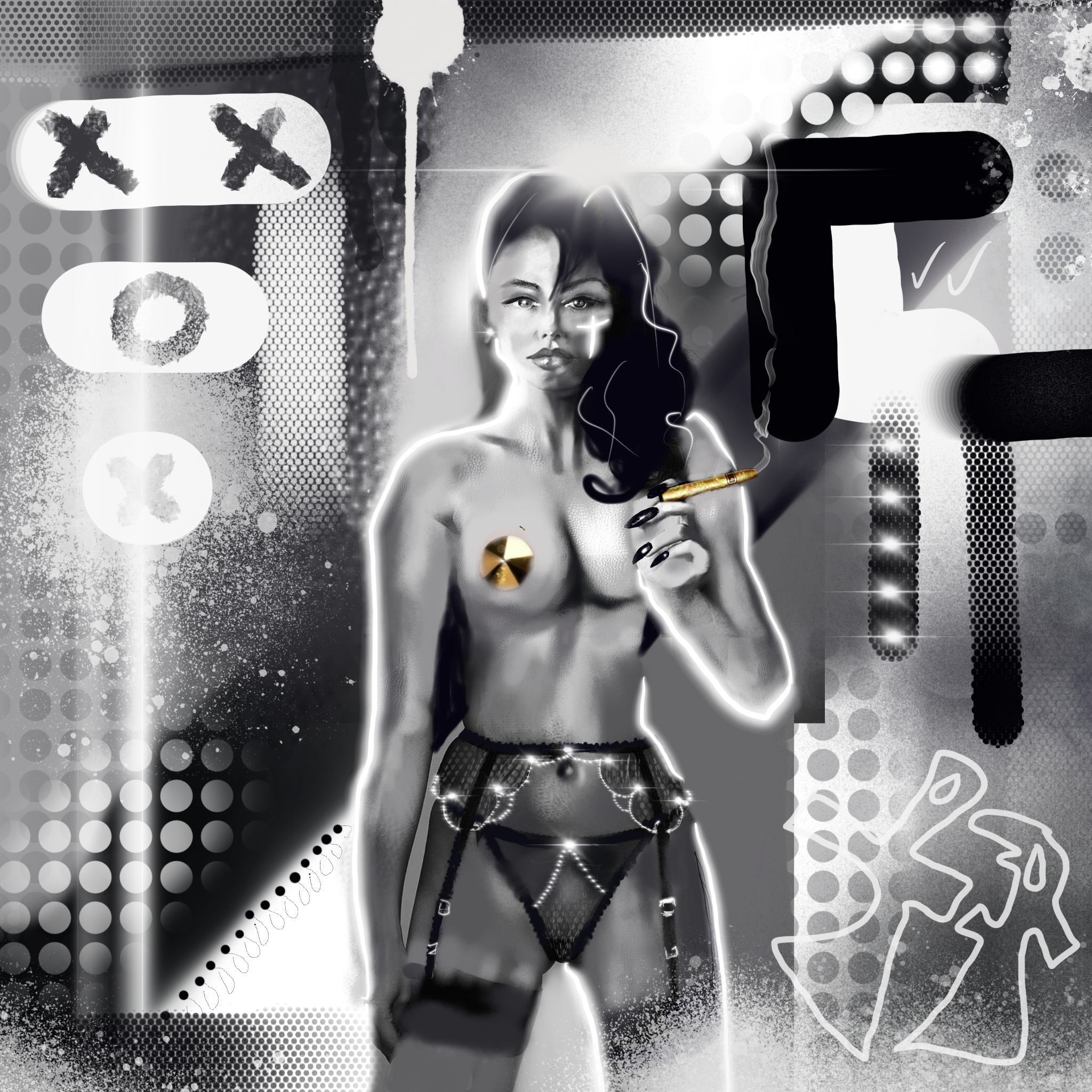 Her body is a cage as she stands in The Gold Room of this maze...