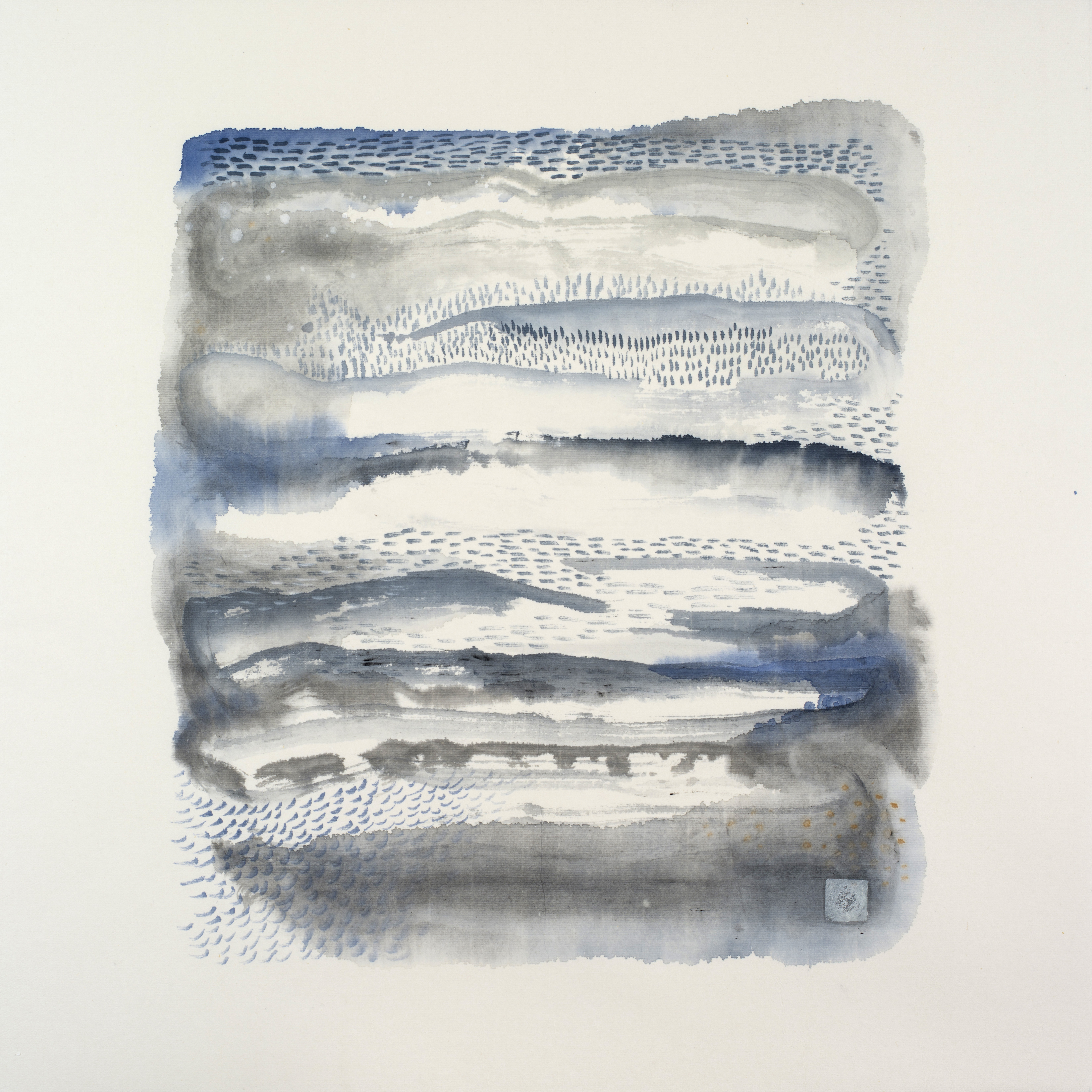 “Georgina’s series of works express the integration of time and space. It is difficult to draw great mountains and rivers with limited ink. Georgina’s painting strokes, in which ink and water are blended together, are vivid and lively, simultaneously dry and wet. Her ethereal and flowing compositions from the scatter perspective with the eye of her heart is the spirit of Chinese ink and water with the form of Western modern constructivism.
