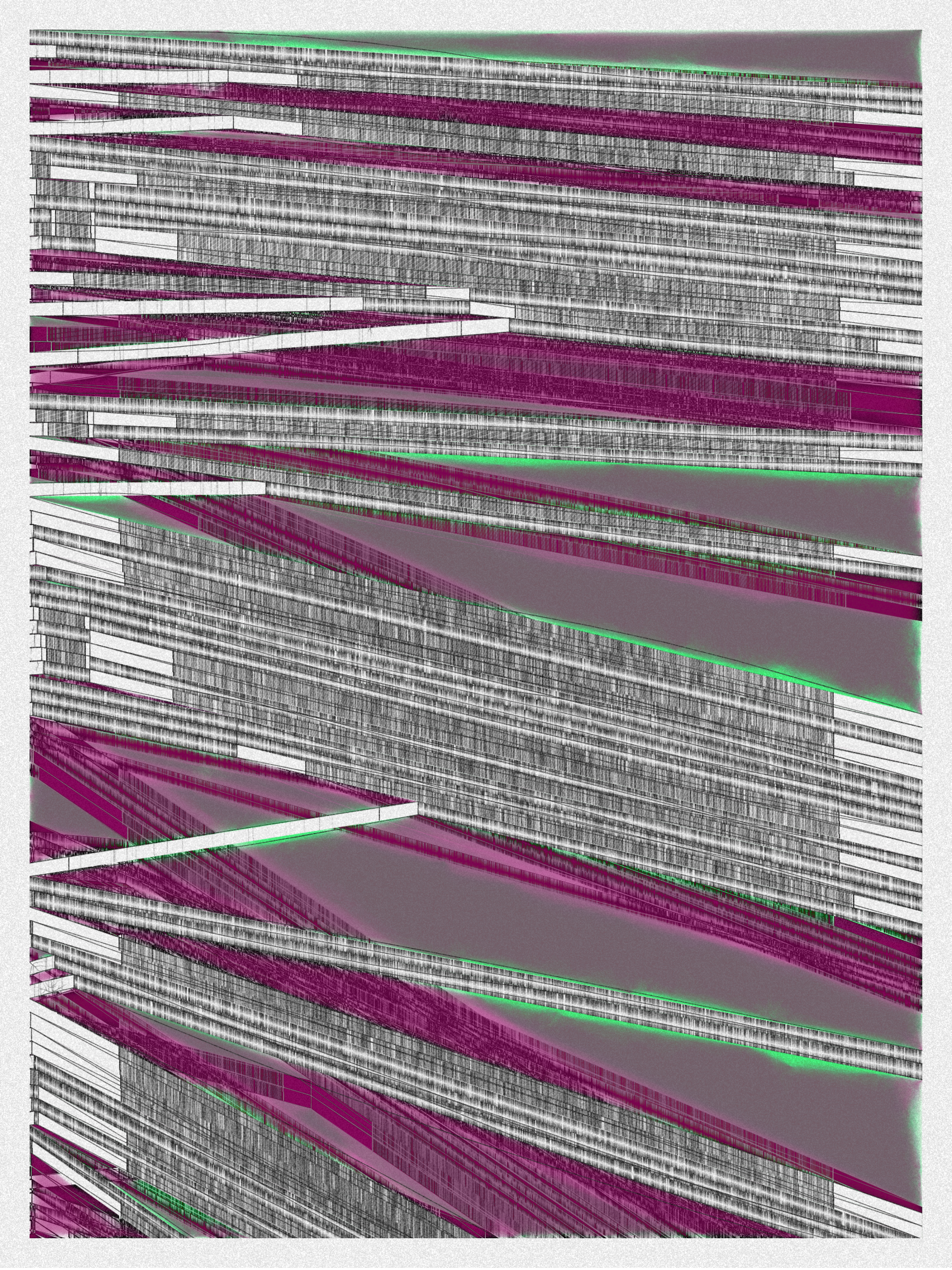 Looking at one Neural Sediment will deliver you a first broad impression; however, looking at it for a longer time will yield a never-ending and much more nuanced and delicate observation. Like Alberto Burri’s Cracks series, some things not obvious to the eye become real over time. Each Neural Sediment opens itself to the viewer in a unique way. The more you look at it, the more you can decipher it.