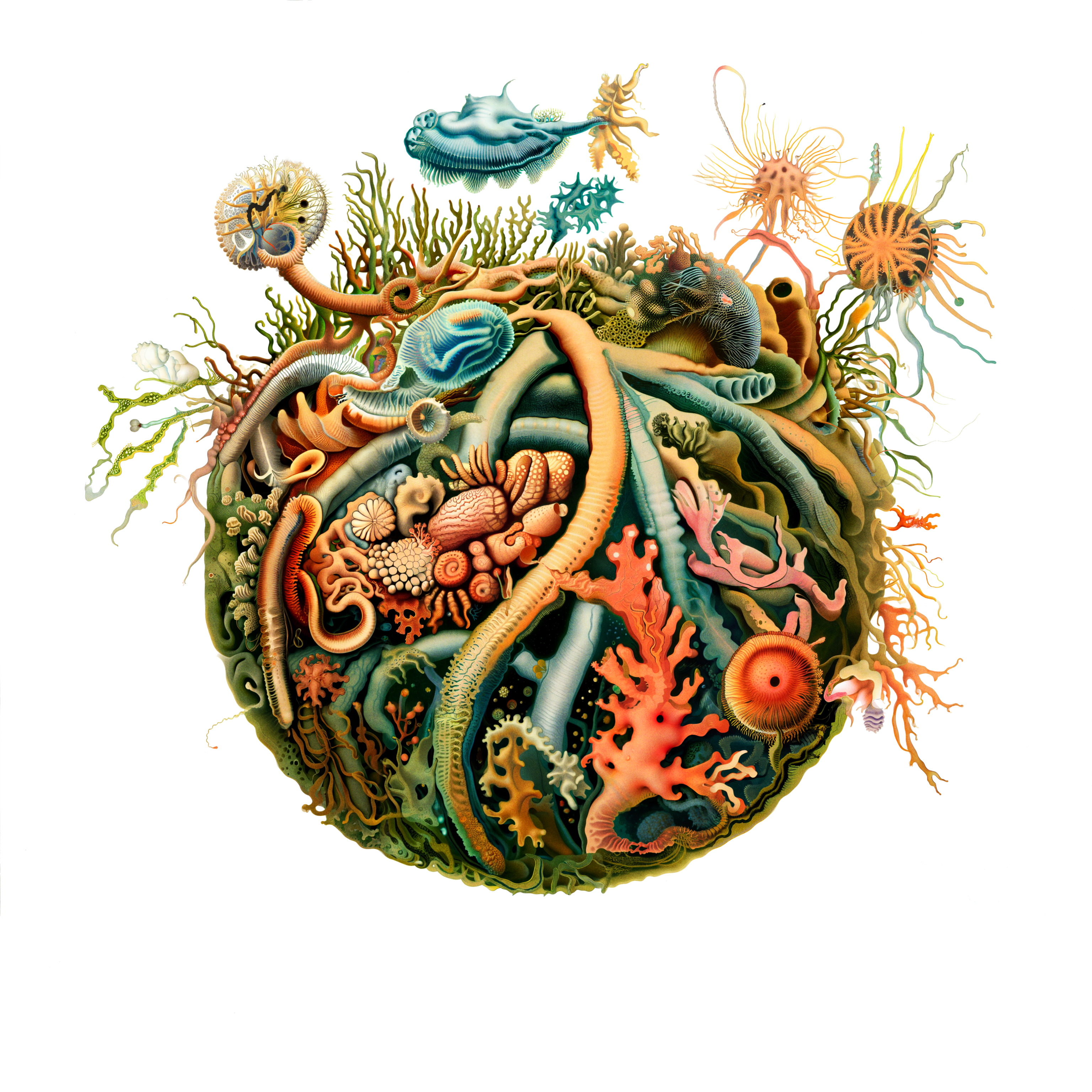 When we examine even a tiny drop of water, we uncover thriving communities of life and interconnections. It is easy to see each drop as a self-contained world, bounded by surface tension. However, given the opportunity, even the smallest of these ecosystems will blend with other bodies of liquid, altering the life forms and composition within. This series represents a collection of samples taken from the same intertidal area of artificial life, forming a collection of microscopic worlds, all seemingly singular, yet patiently waiting for the chance to blend into something greater.