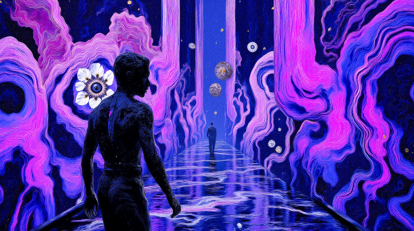 What do you become when your world collapses? TRANSDIMENSIONAL TRIPPERS is 500 answers: characters caught between states, solid forms becoming liquid consciousness, reality bending around those brave enough to transform. Every piece is a mirror. Step through the portal. The collection comments on crypto speculation, social media toxicity, and the search for meaning, rendered in MLOW's drippy digital alchemy aesthetic.
