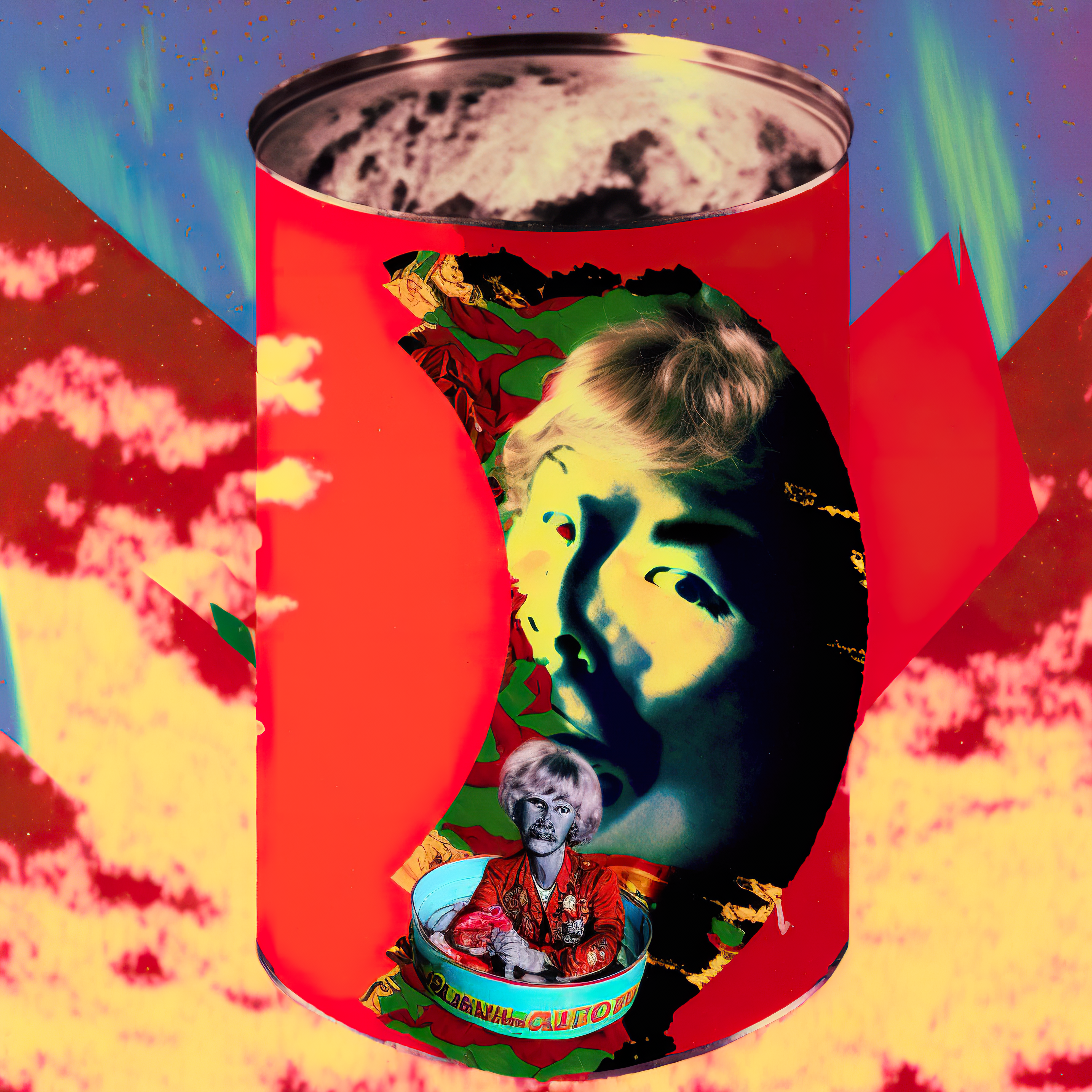 A series of surreal pulp cans generated using Midjourney (a.i)