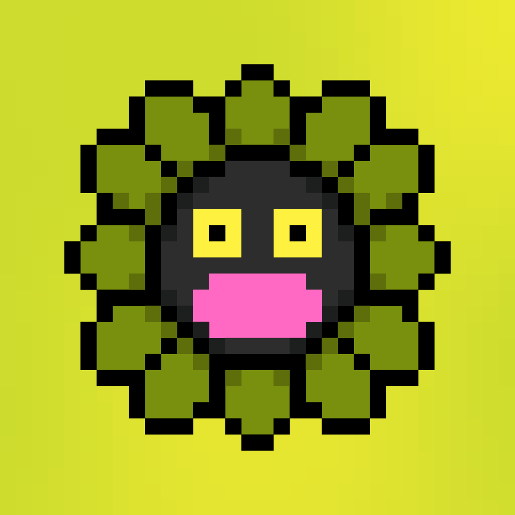 Murakami.Flowers is a work in which artist Takashi Murakami’s representative artwork, flowers, are expressed as dot art evocative of Japanese TV games created in the 1970s. The work is being developed with the number 108 as the keyword; a combination of 108 backgrounds and flower colors make up a field, and there are 108 fields. Each field has 108 flower images, resulting in 11,664 flower images in total. The number 108 is a reference to bonnō, or earthly temptations.