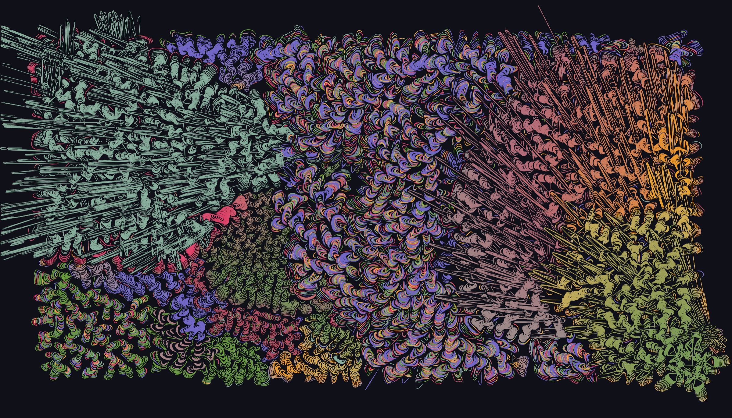 Joshua Bagley is a generative artist from New Hampshire, USA, specializing in computer-coded artwork and pen plotter creations using an HP 7550 Plus. With a formal background in physics and aerospace engineering, Bagley began self-teaching programming in 2020, initially exploring cellular automata in Python. This path led to an enthusiasm for generative art, leading him to adopt Processing as his primary tool for creating art.