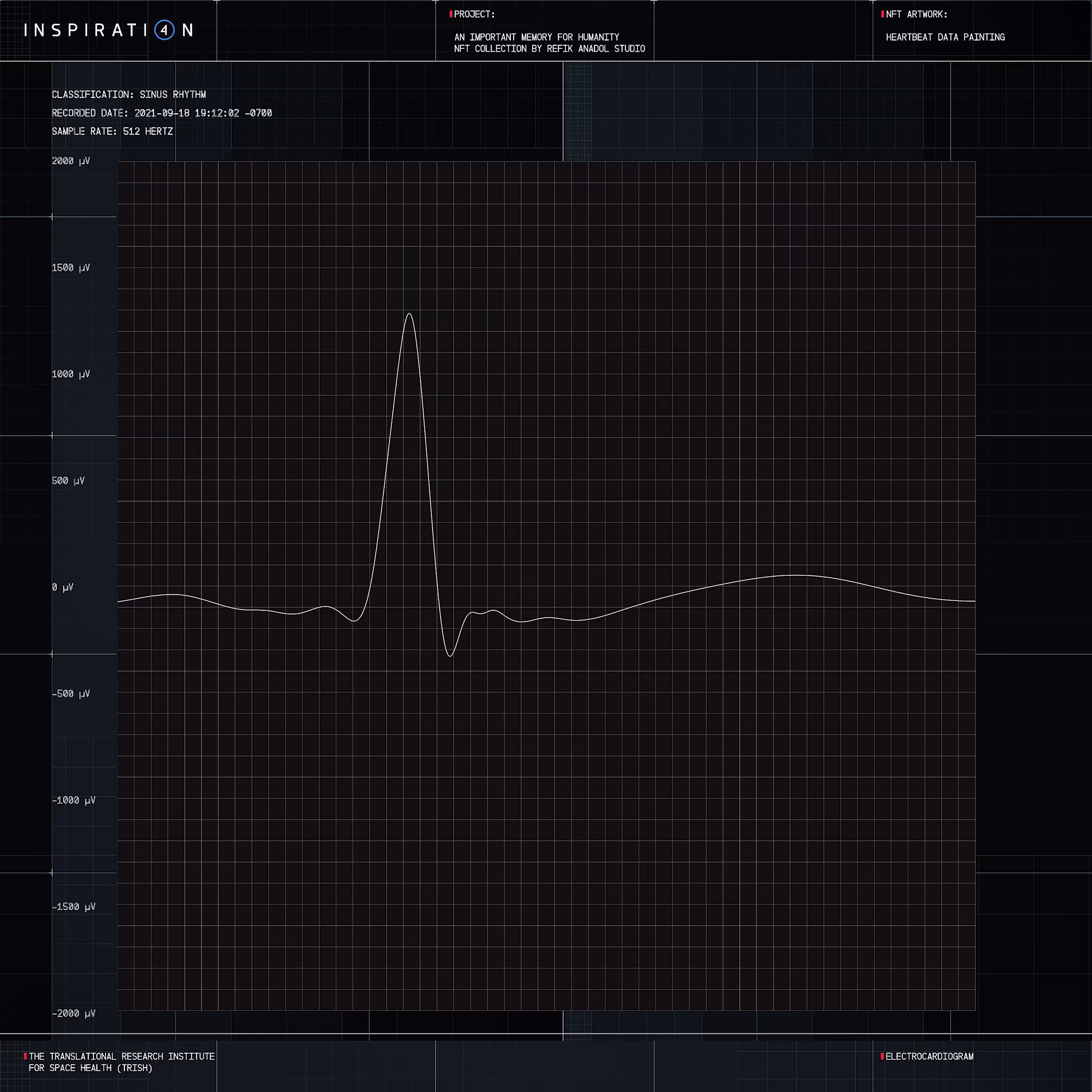 For this collection, Anadol and his team interpreted data from SpaceX and NASA-funded research institute TRISH (Translational Research Institute for Space Health) on the effects of space travel on the human body. TRISH conducts cutting-edge research into the impact that the conditions in space have on the astronauts, with an attempt to reduce the health risks of venturing deeper into the universe.