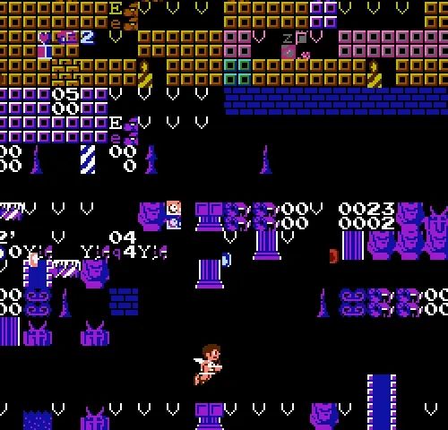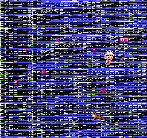 In Angelcores & Heavenly Sprites, Sabato Visconti uses glitch and ROM-corruption processes to reveal the angelic aspects of early console games, specifically third- and fourth-generation 8-bit and 16-bit consoles like the NES, Super Nintendo, and Sega Genesis.