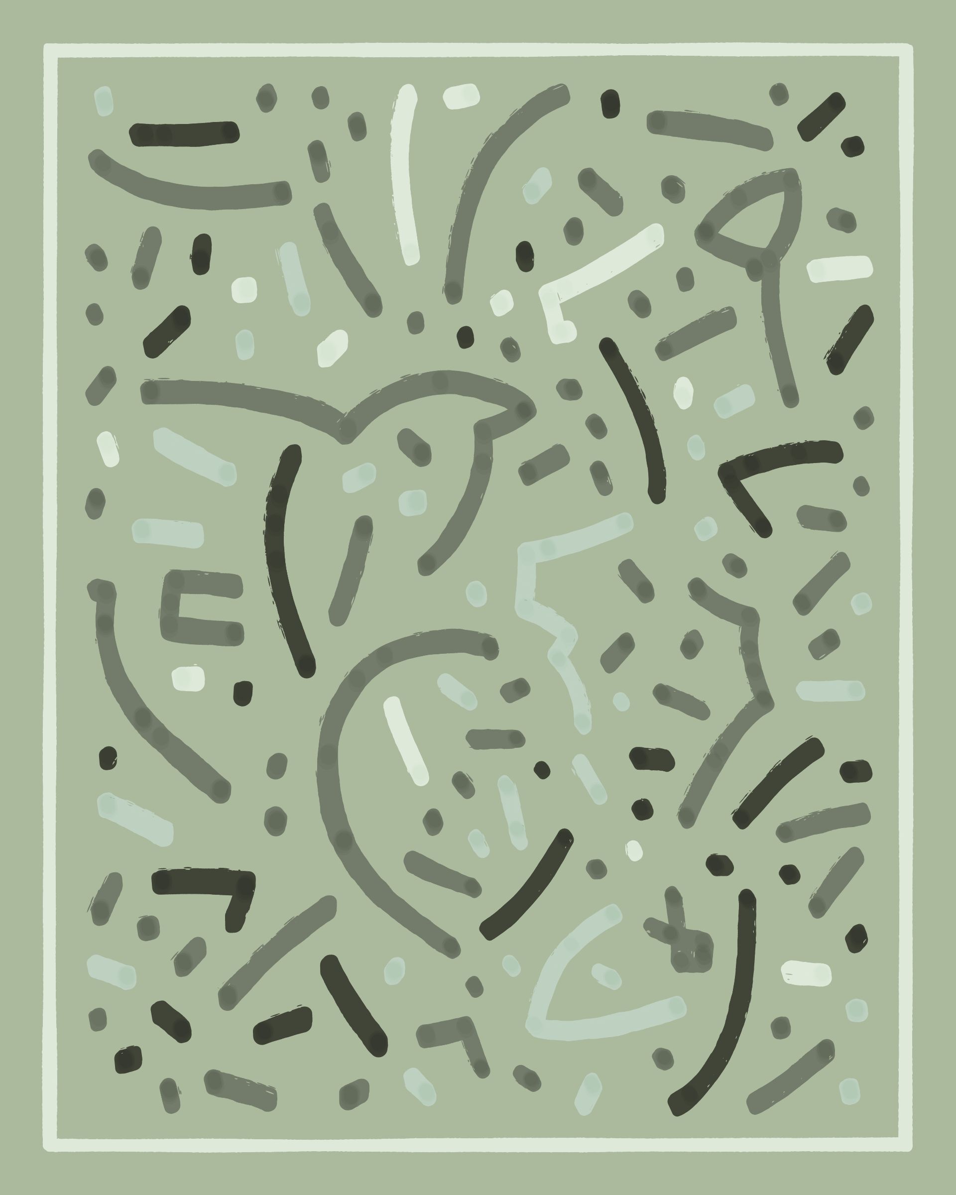 This project explores the age-old computer art phenomenon of inviting the viewer to actively participate in the interpretation of the visual output. The way "Sharp-E" draws the strokes is through a mix of various movements — irregular curves, straight lines, sudden changes in direction — in a classic random walk algorithm, while avoiding overlaps with previously drawn strokes. There are no pre-programmed forms per se, but nevertheless it can be common for the viewer to perceive images, symbols, meaning in the generated output.