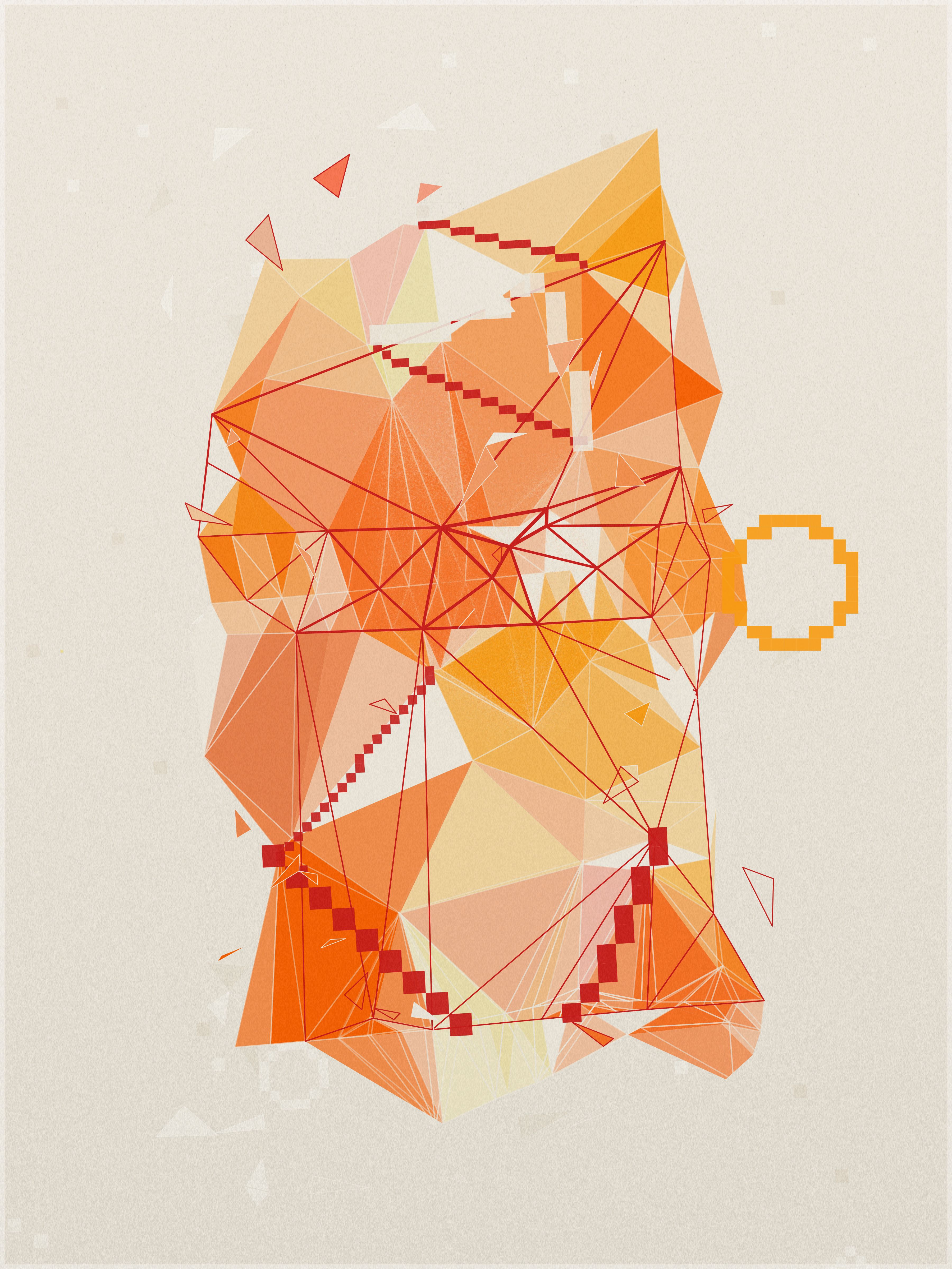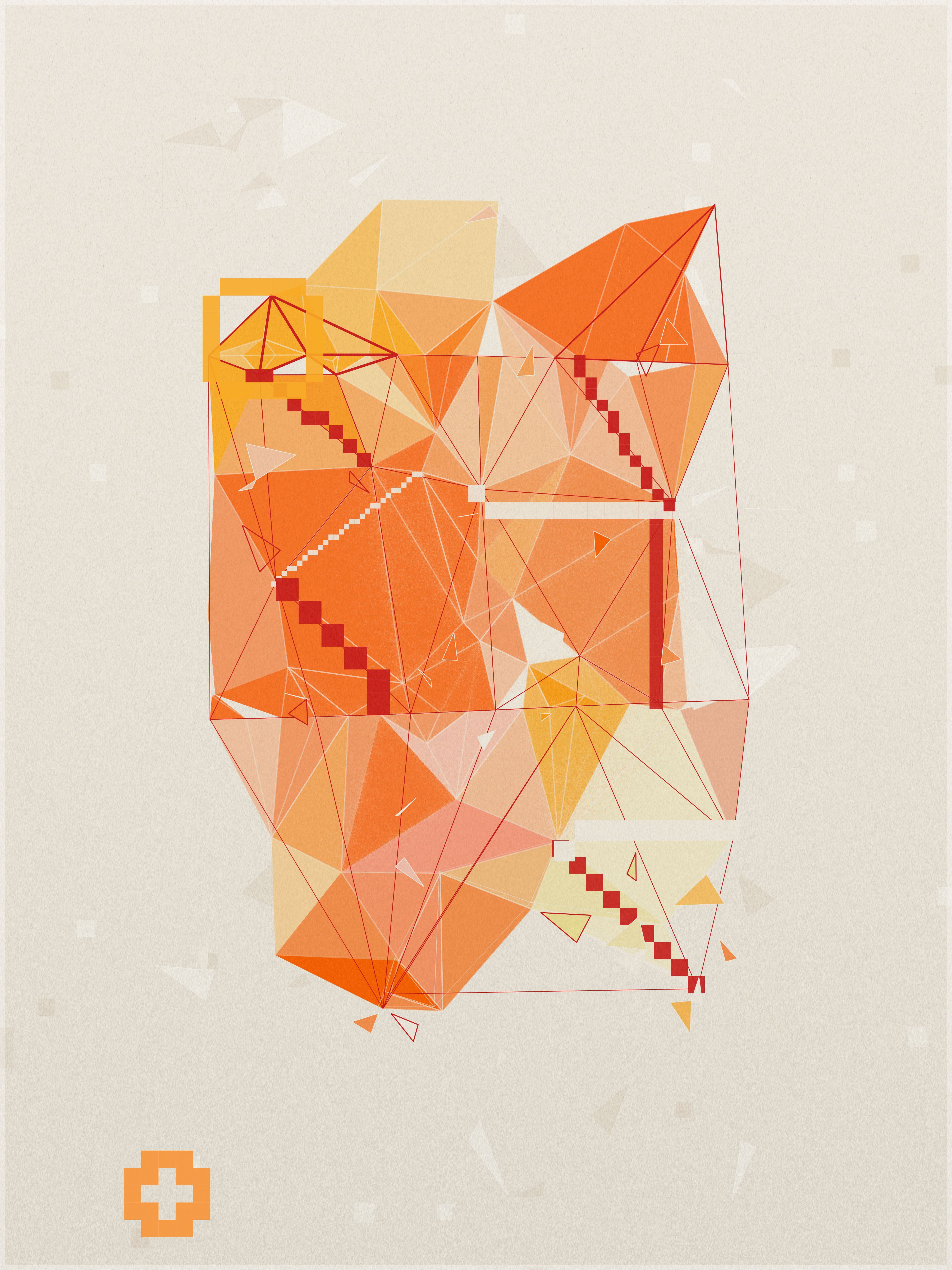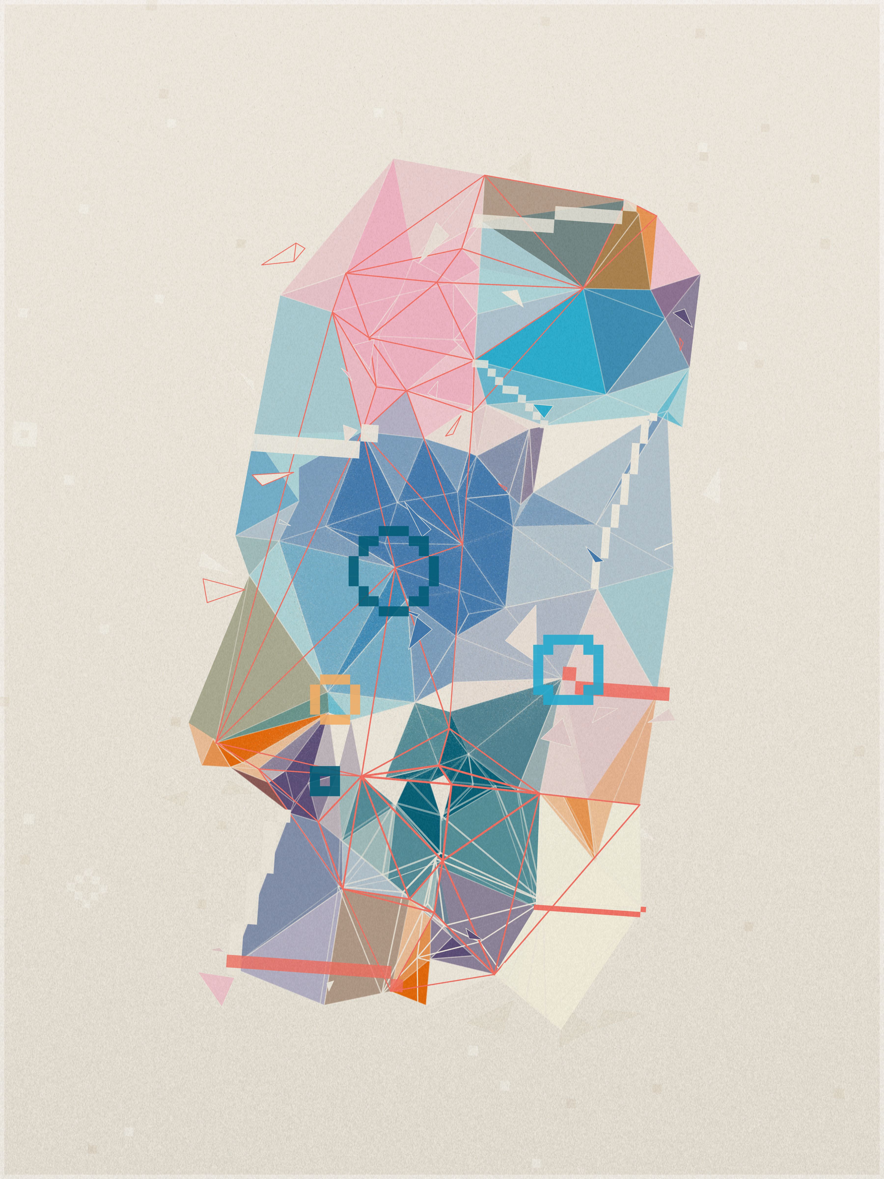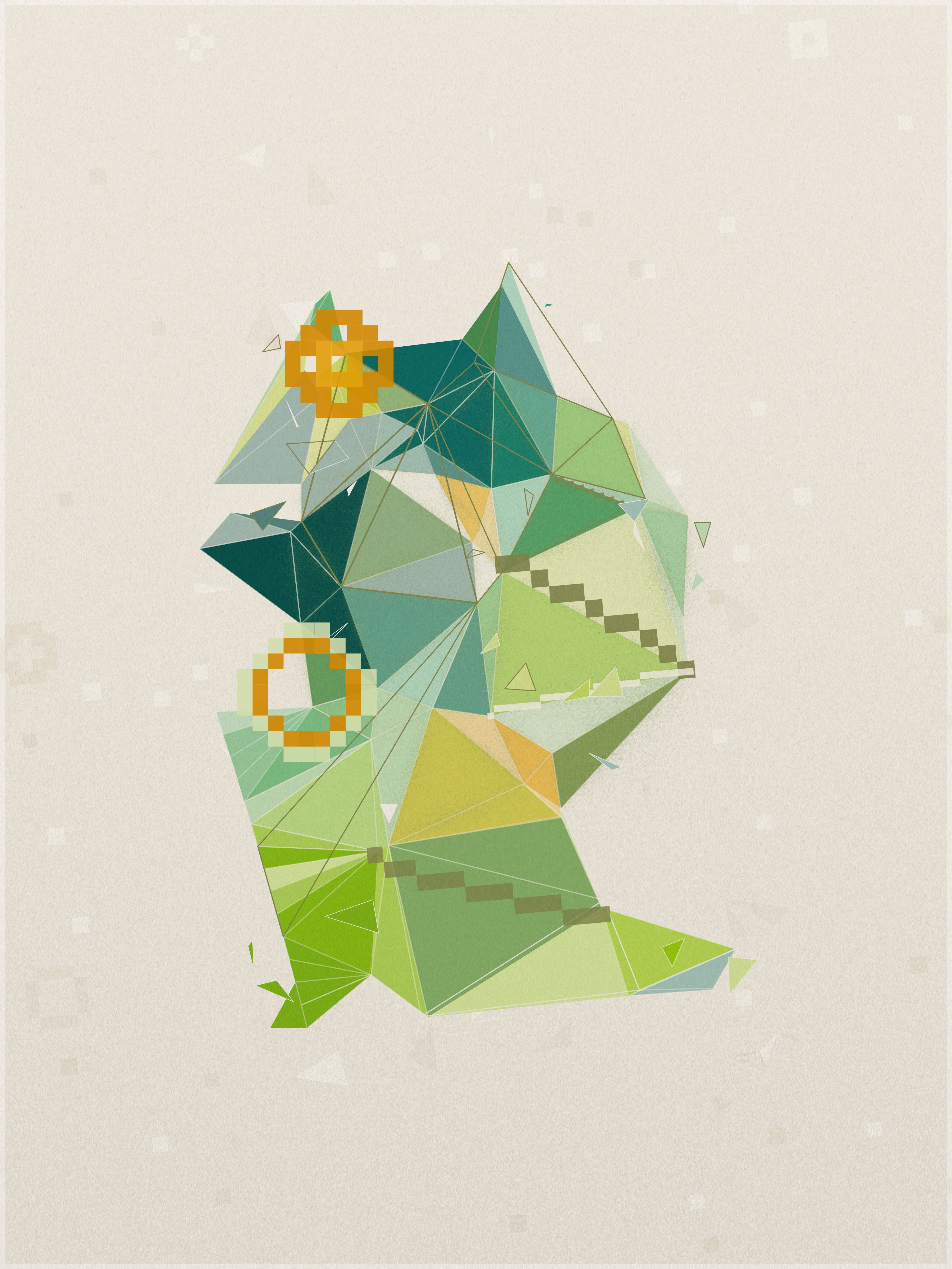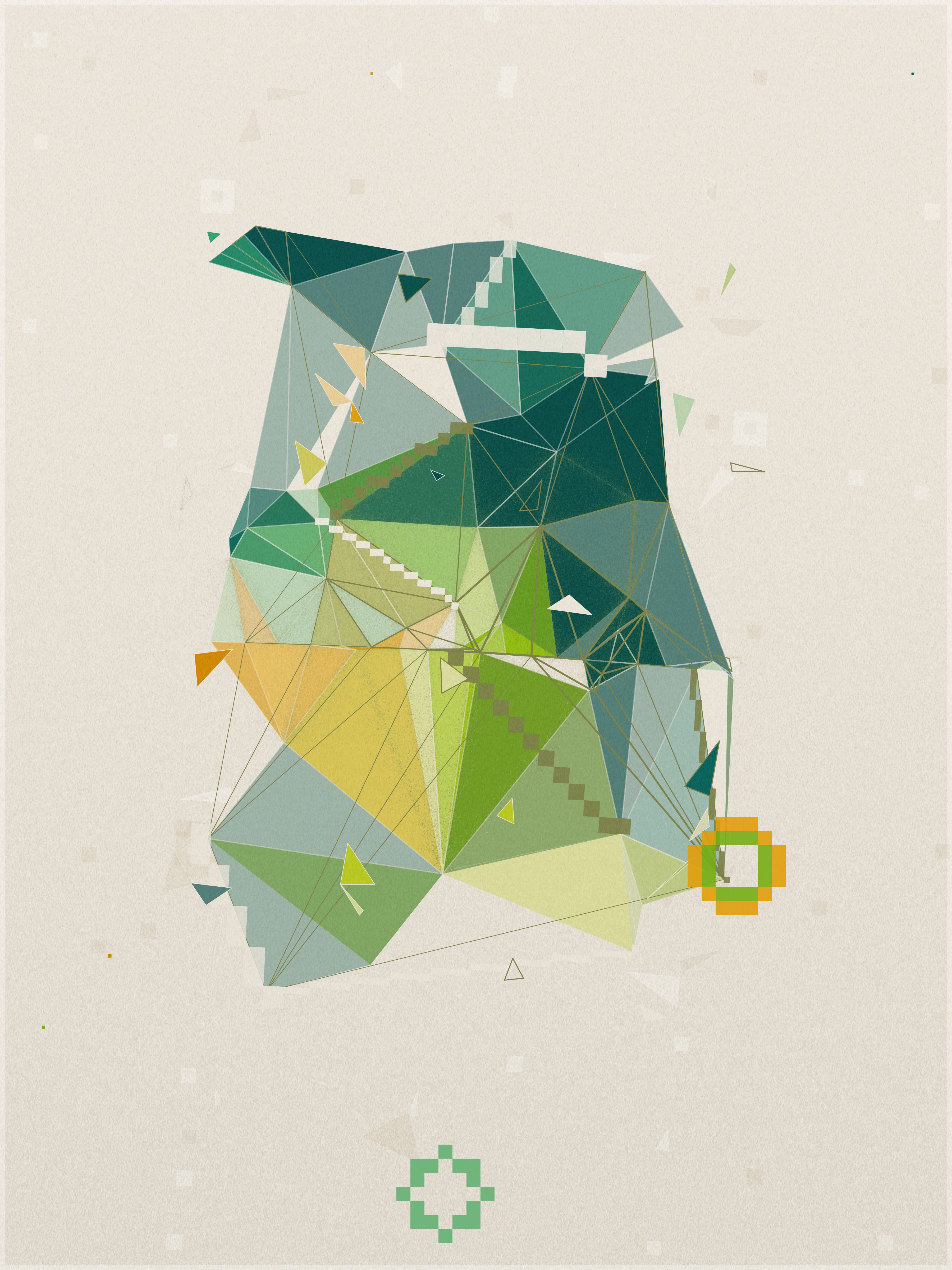 First, a base layer is created, where the colors of the palette flow in an organic pattern. On top of this, each triangle samples five key points: the center, the three vertices, and the midpoint of its longest side. The algorithm calculates an average of these values to define the triangle’s final color.