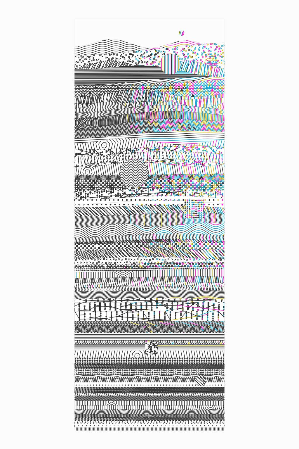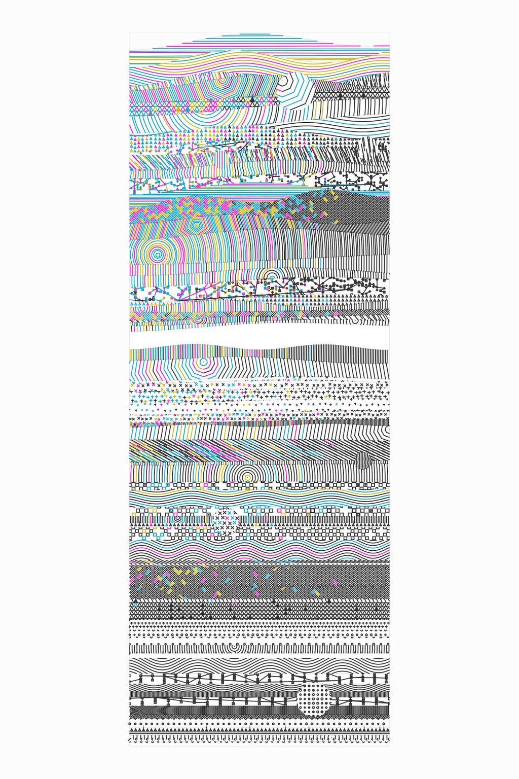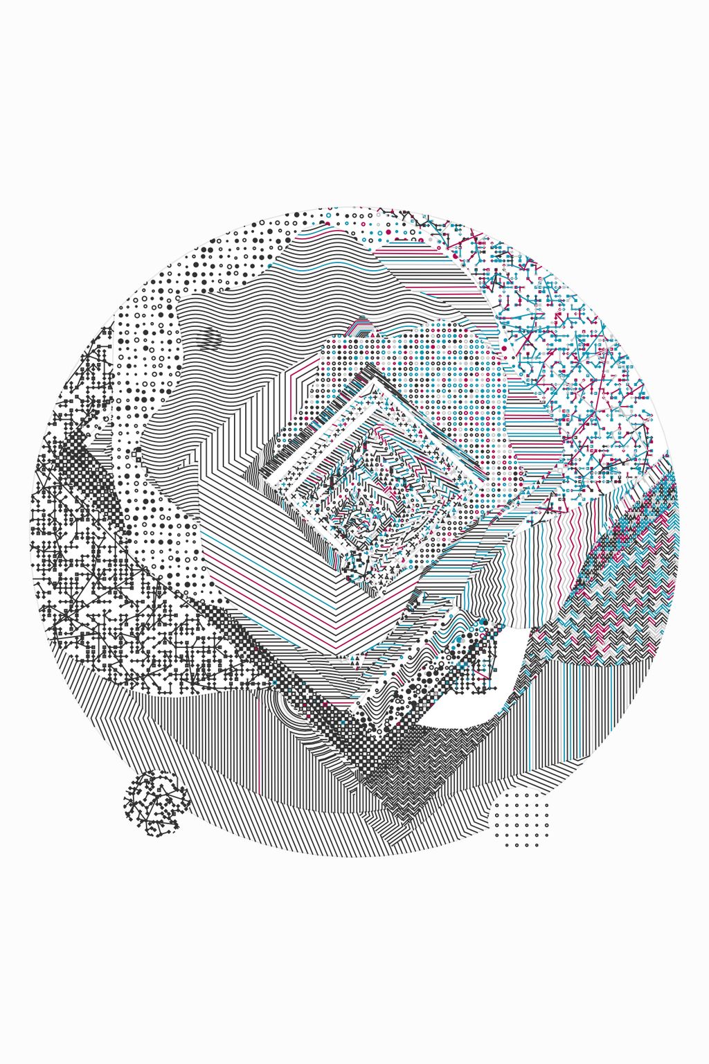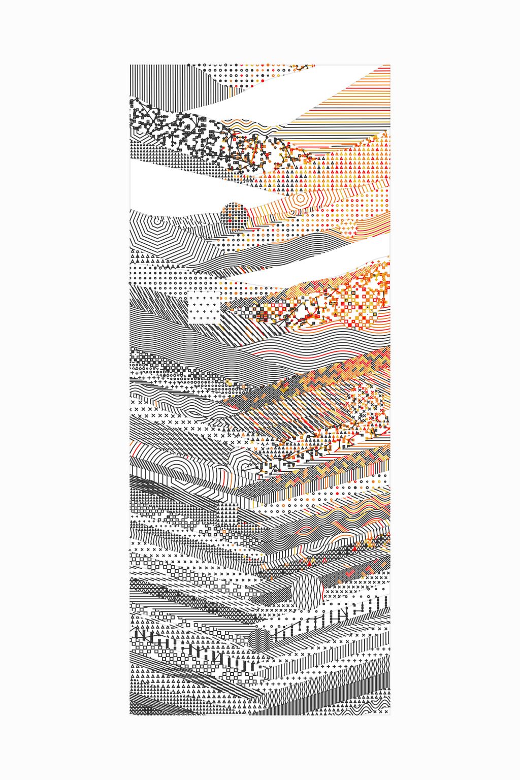 A plotter drawing is a physical drawing created with a mechanical drawing machine. In the 1960s, plotters were created to automate precise technical drawings, but were co-opted by artists in order to explore new ways of creating art. Before high-resolution printers and computers with screens, plotters were the primary way that code became drawings. Today, using a plotter to create images from code is one decision among many others. Making plotter drawings is difficult and wonderful, and the artists in –GRAPH are passionate about this medium. They share a love of working with visual systems and writing code, and transforming how the code is rendered through drawing machines. Each of the six artists in –GRAPH have created one software artwork that creates 30 unique physical drawings. Alongside these drawings, millions of other compositions are embedded in the software, to be viewed through an interface created by each artist. — Casey Reas