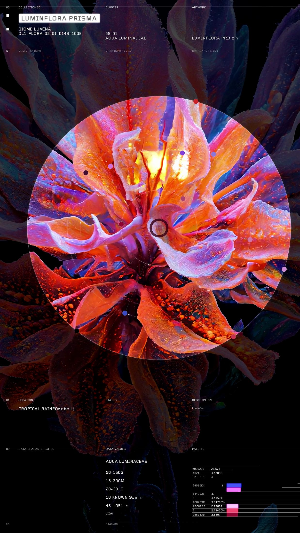 The Dataland Founding Digital Collection, Biome Lumina, is the first series of 1,000 unique living paintings on blockchain by Refik Anadol Studio for Dataland. Biome Lumina represents a bold new frontier in generative art. As the artwork emerges and transforms, its structure and luminescence is directly shaped by the incoming environmental data from rainforests around the globe. Collectors will be able to engage in dynamic conversations with the artwork through a generative AI interface trained on environmental knowledge and datasets. Each piece is accompanied by AI soundscapes based on a precise network of sensors monitoring atmospheric dynamics and ground conditions. Biome Lumina sets the stage for things to come. It is an invitation to enter an ongoing collaboration between nature, code and collector, exemplifying a world in which technology is not a disconnection from the Earth — but a return to it.