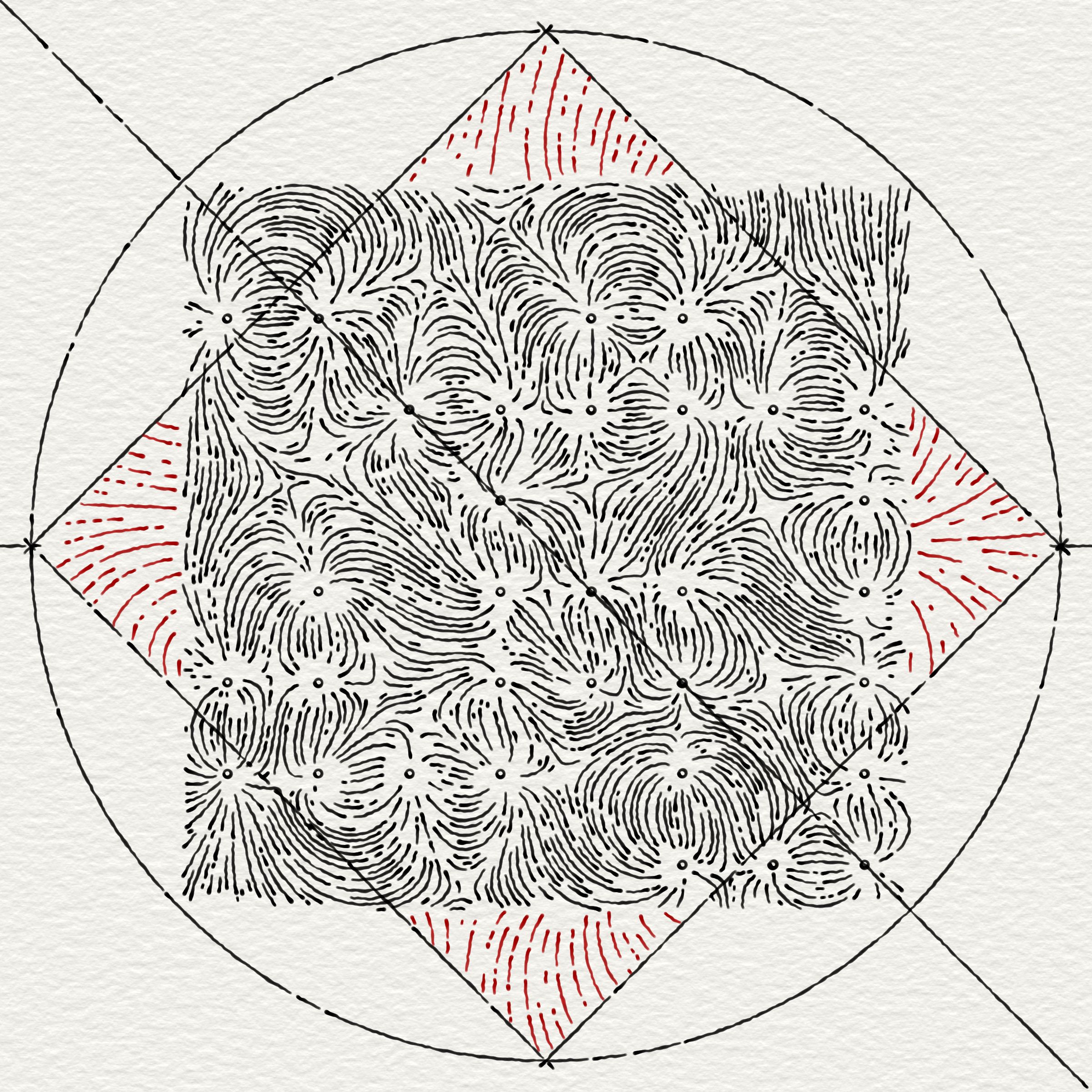 The style was inspired by the sketches of Euler and da Vinci. Both were revolutionary minds, they sought to understand and explain the world in diagram, a tradition that has been preserved in art and science to this day. More broadly, I've felt inspired by Sol Lewitt and Vera Molnar, in particular their use of dense detail, seeing how it can provide tension in their work and draw the viewer in closer.