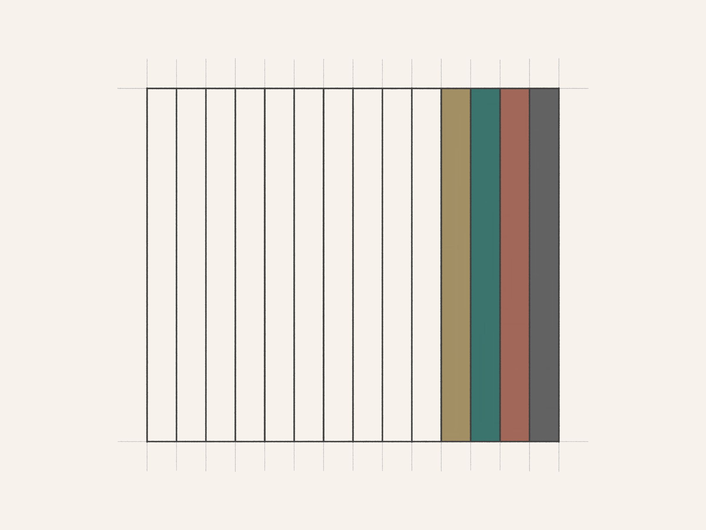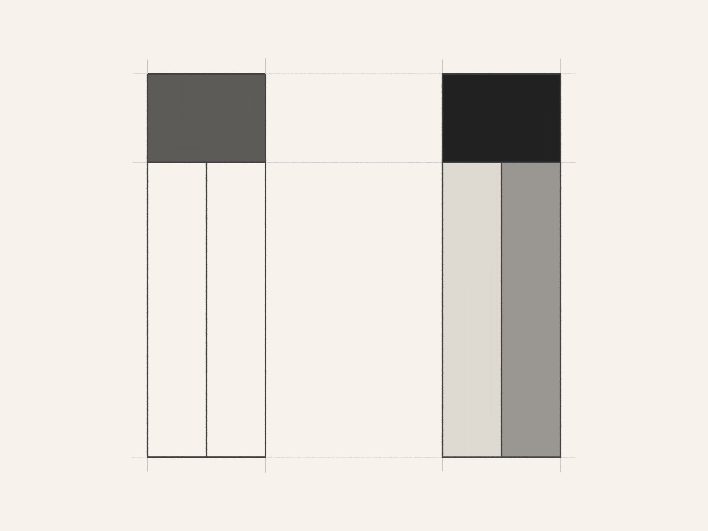 Drawings for a Monument is a generative series exploring the development of a minimalist monument to Art Blocks. Each drawing pays tribute to a different project from the Curated collection, examining its color expression within a linear framework. The algorithm translates the chromatic identity of each Curated project into hand-drawn geometric studies with pencil guidelines, painted rectangles, and black outlines.