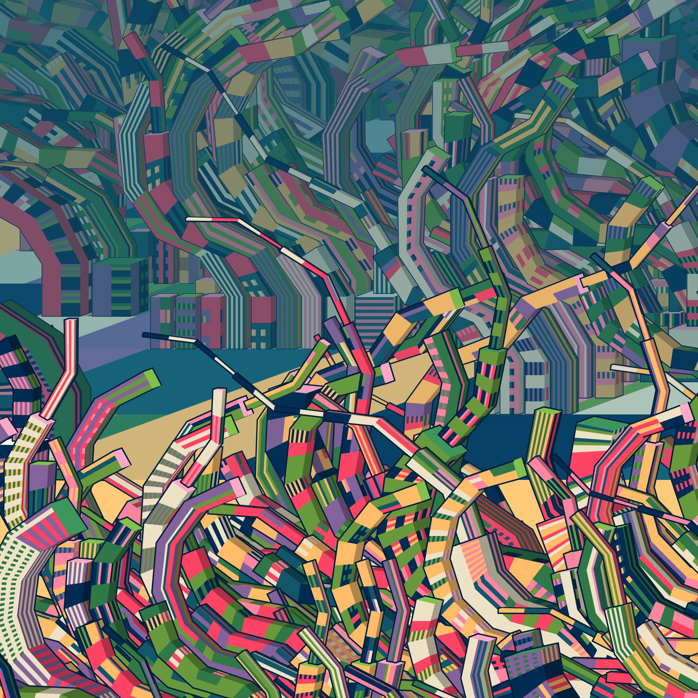Project Description: Ecumenopolis focuses on exploration and discovery, generating scenes of cityscapes in unknown worlds. 10% of the minting profits will be donated to the National Alliance to End Homelessness (https://endhomelessness.org/). Created by Joshua Bagley