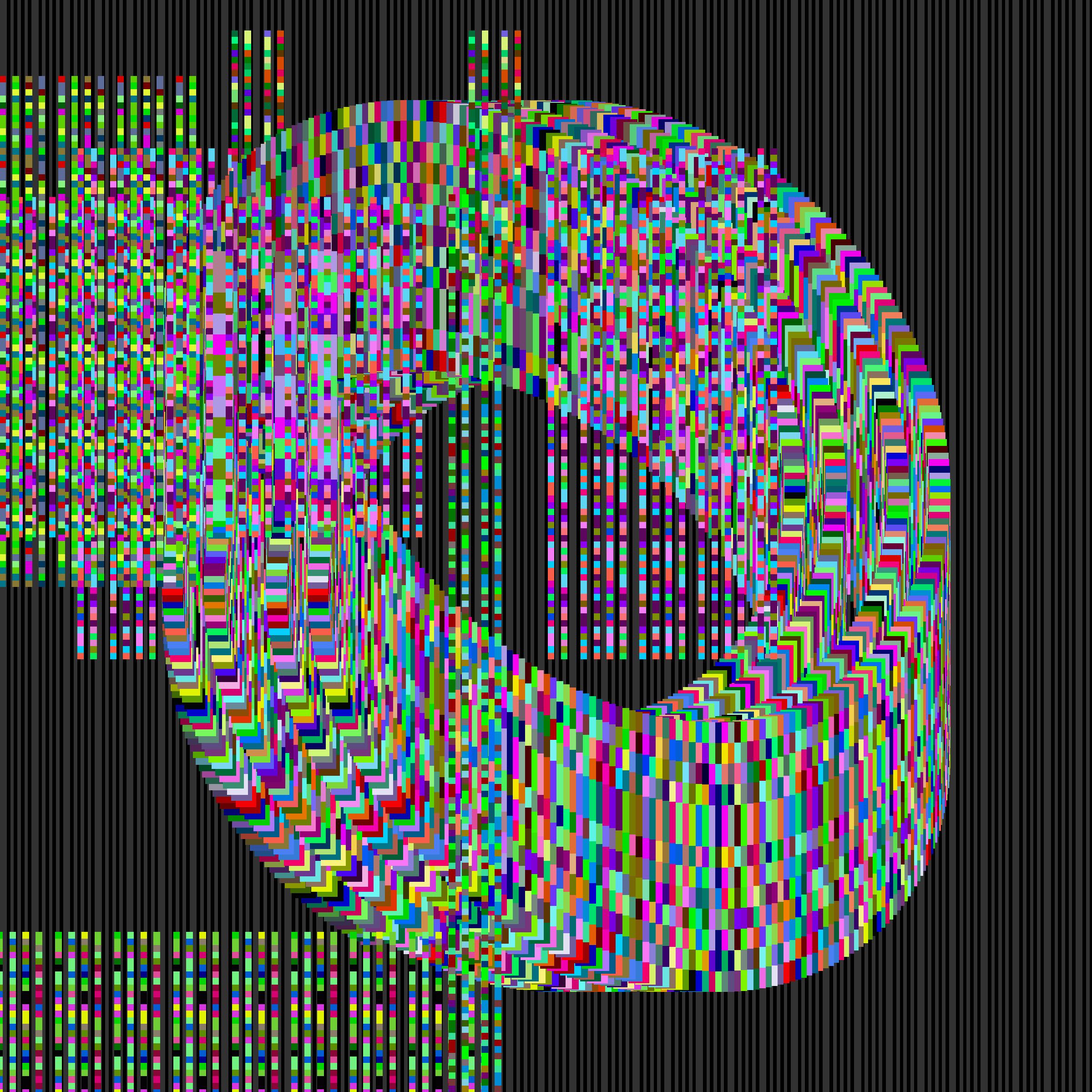 Project Description: Generative System 2: In this installment, the token ID hash string is read from left to right to create a bitmap matrix and a color matrix. Both are combined to create an image, which is then used in algorithmic fashion to compose a dynamic visual composition.
