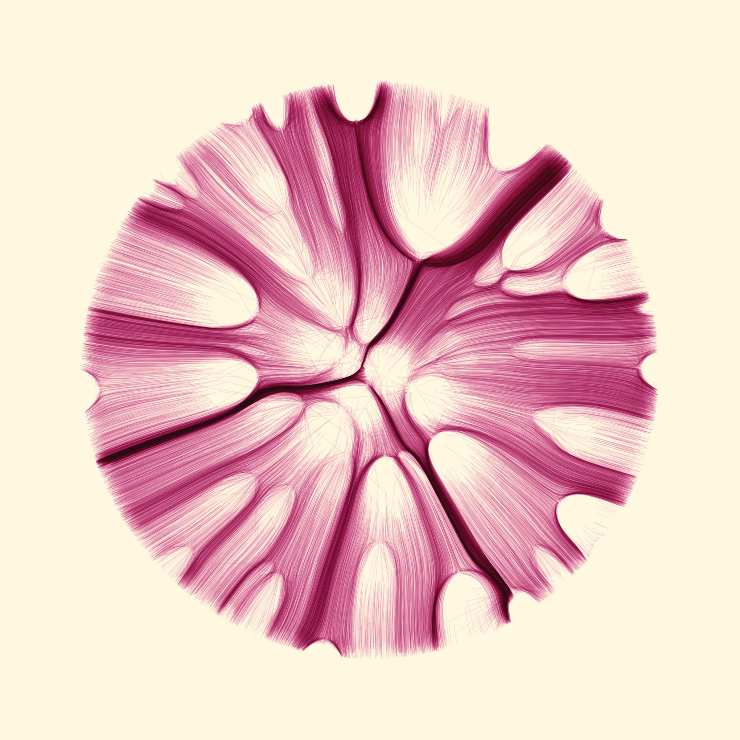 Project Description: GRAVITY 12 is an exploration of the connection between math, art and nature. A network of nodes creates a gravitational field through which energy flows.