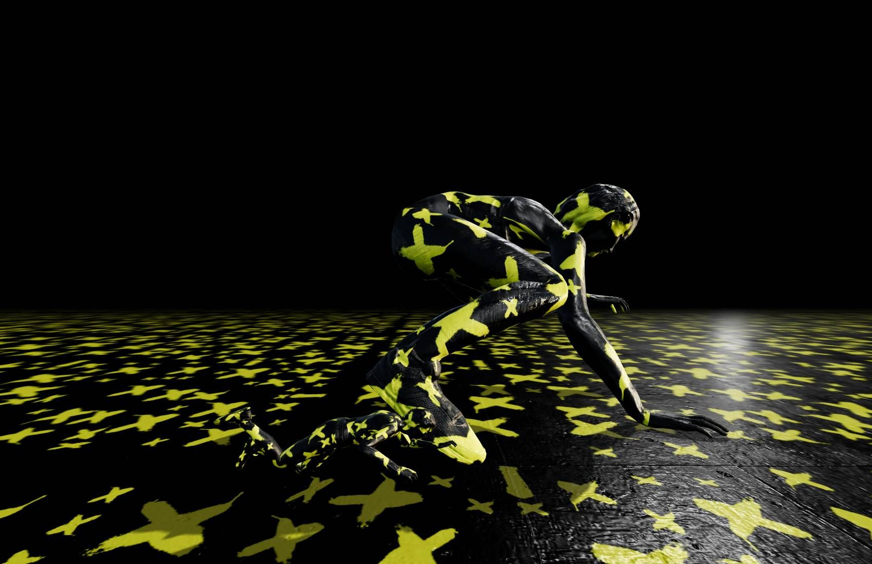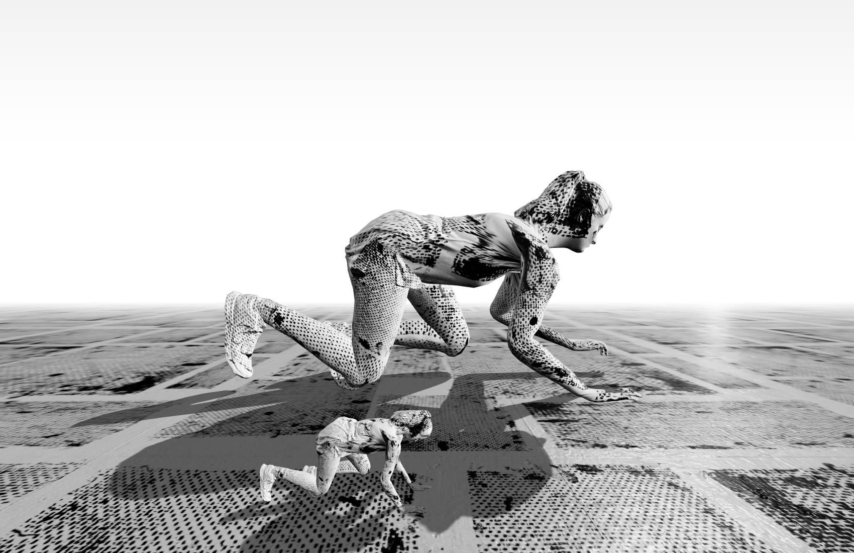 Half Cheetah by James Bloom uses Reinforcement Learning AI models running in real-time. Each piece shows runners on a never-ending journey towards an unknown destination. 3D scans of humans act out behaviours generated by mammalian AI agents. A second RL model then analyses their motion in real-time and re-orders movement dynamically according to alternative goals. There is no improvement towards efficiency. Instead, an abstract flow of body motion continues in perpetuity, trending towards repetition and failure. Functioning software that has no utility but nevertheless exists. https://halfcheetah.xyz/