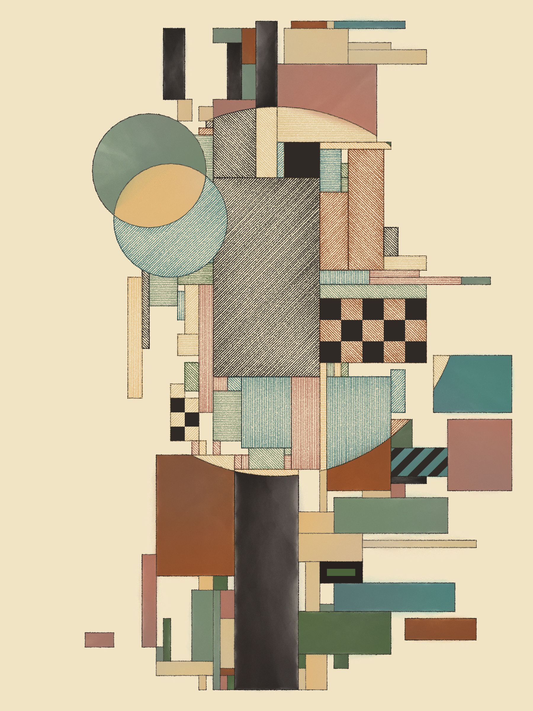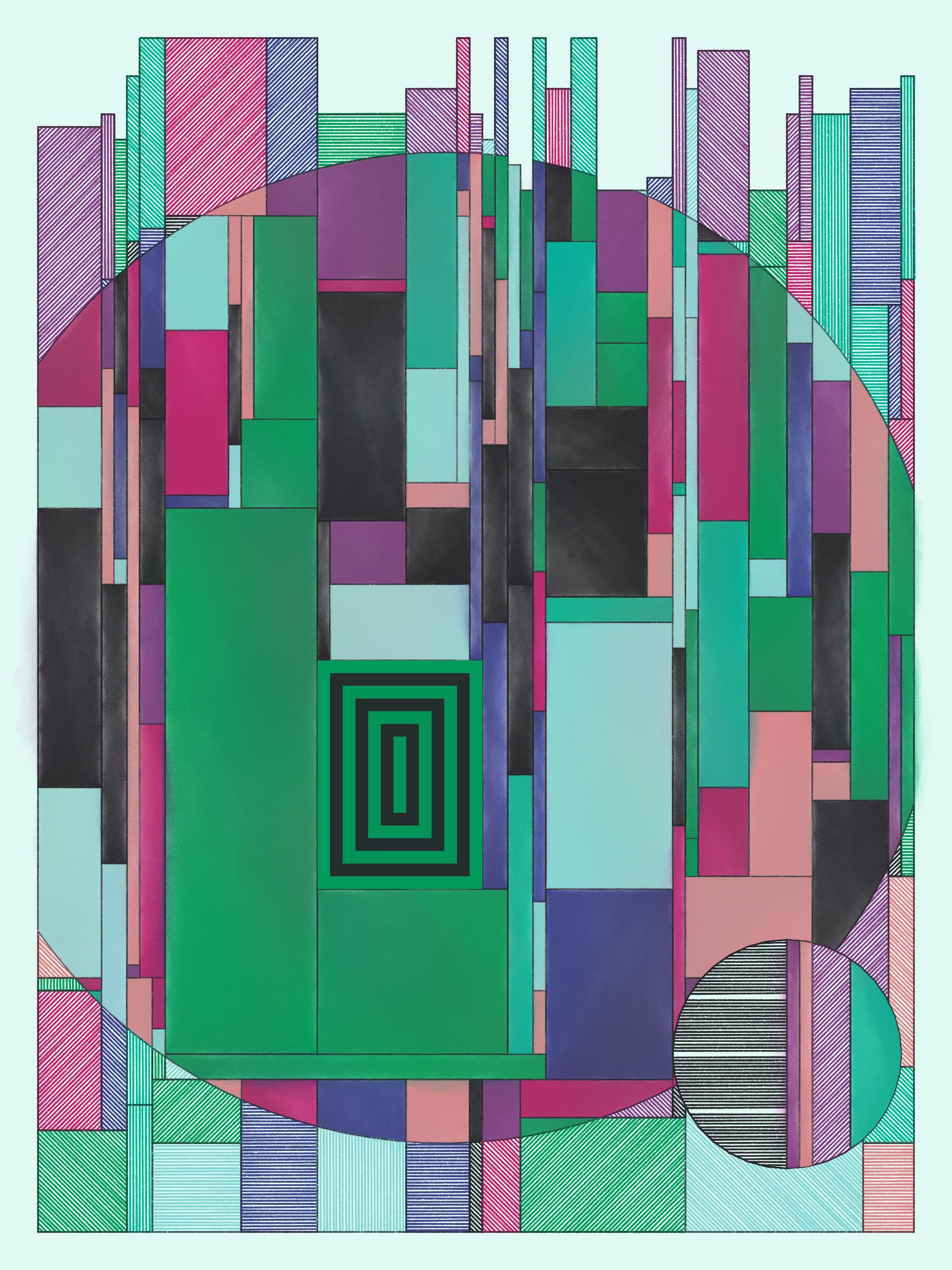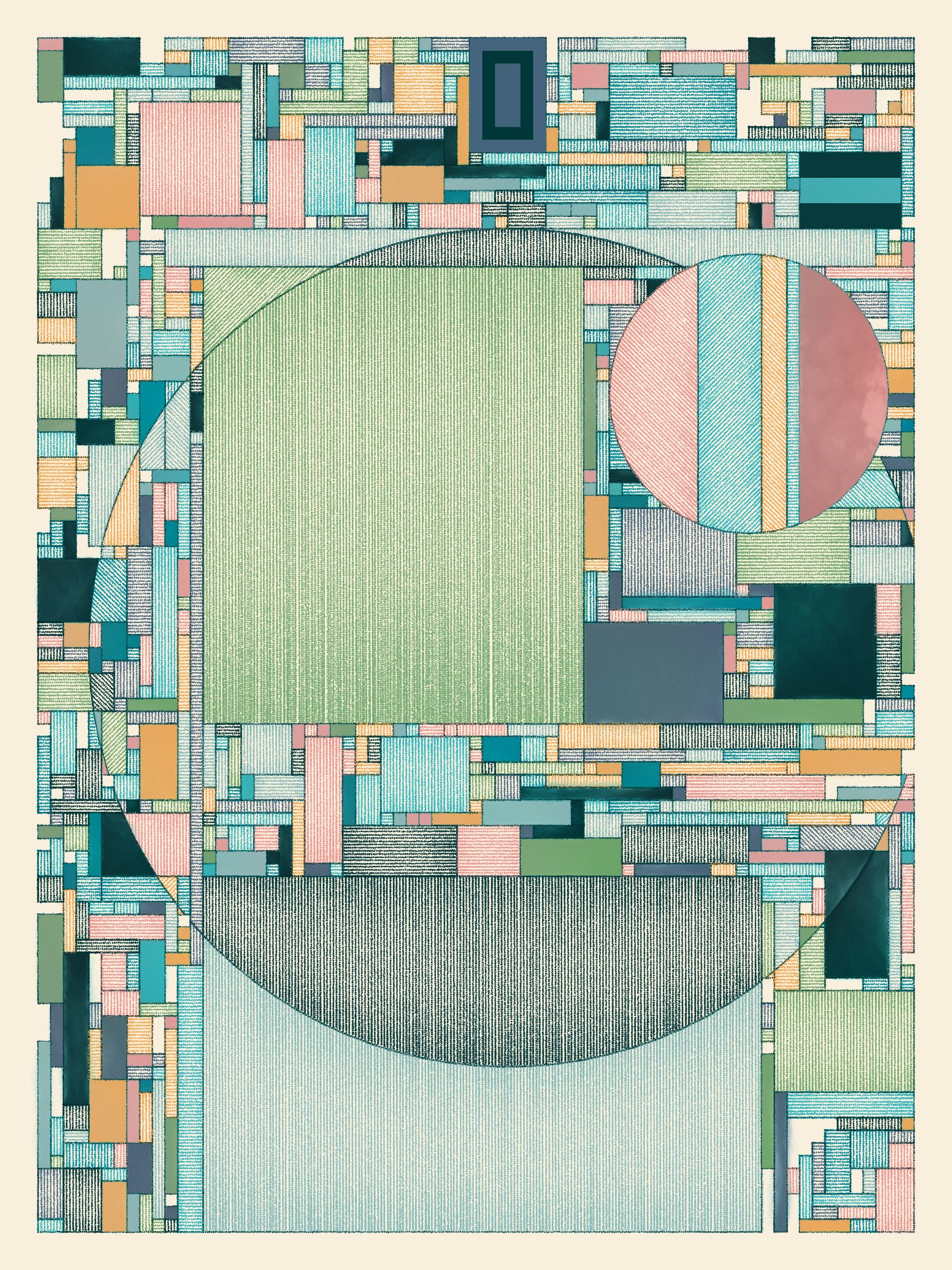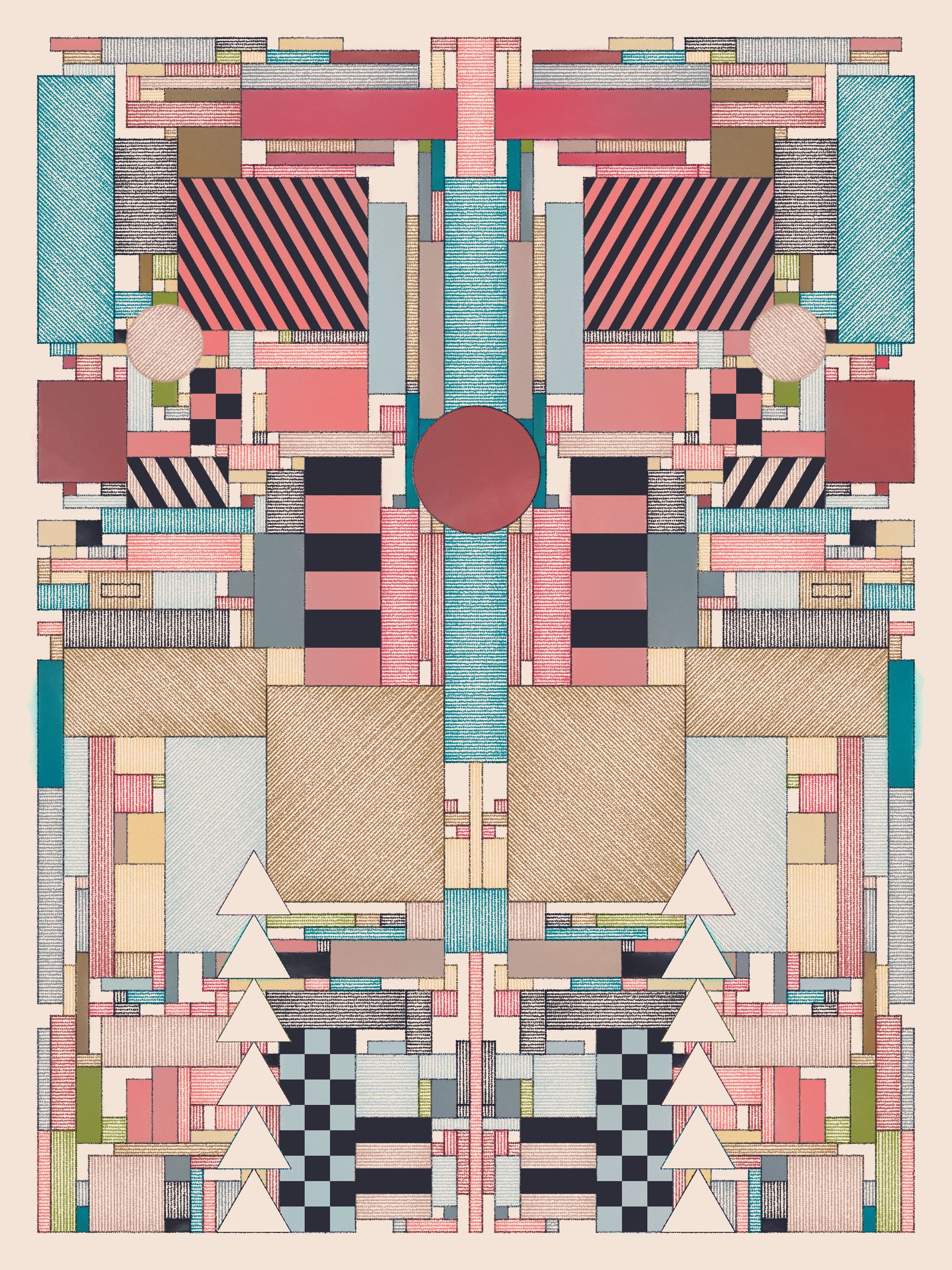 This code-based gen art series explores how simple design rules can lead to expressive compositions. Watercolor washes and cross-hatching add a hand-made feel to humanize each piece and soften the vibe.