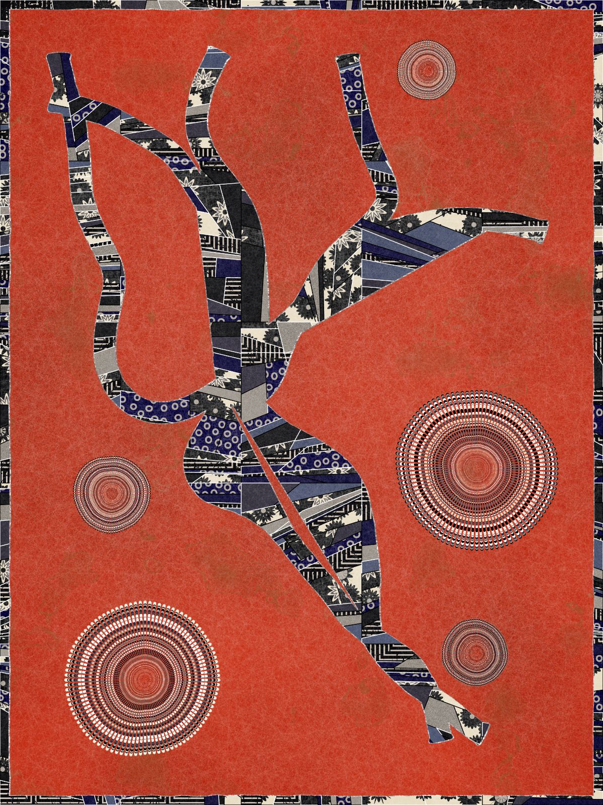 Made entirely with code, Interwoven draws inspiration from the 1986 Bullseye Quilt by Martha Lou Jones in LACMA’s collection, meditating on the quilt’s underlying tension between the computational and handmade through a distinctive patchwork style. The algorithm uses randomness to give rise to creature-like forms in order to embody the narrative elements so integral to the tradition of quilt-making.