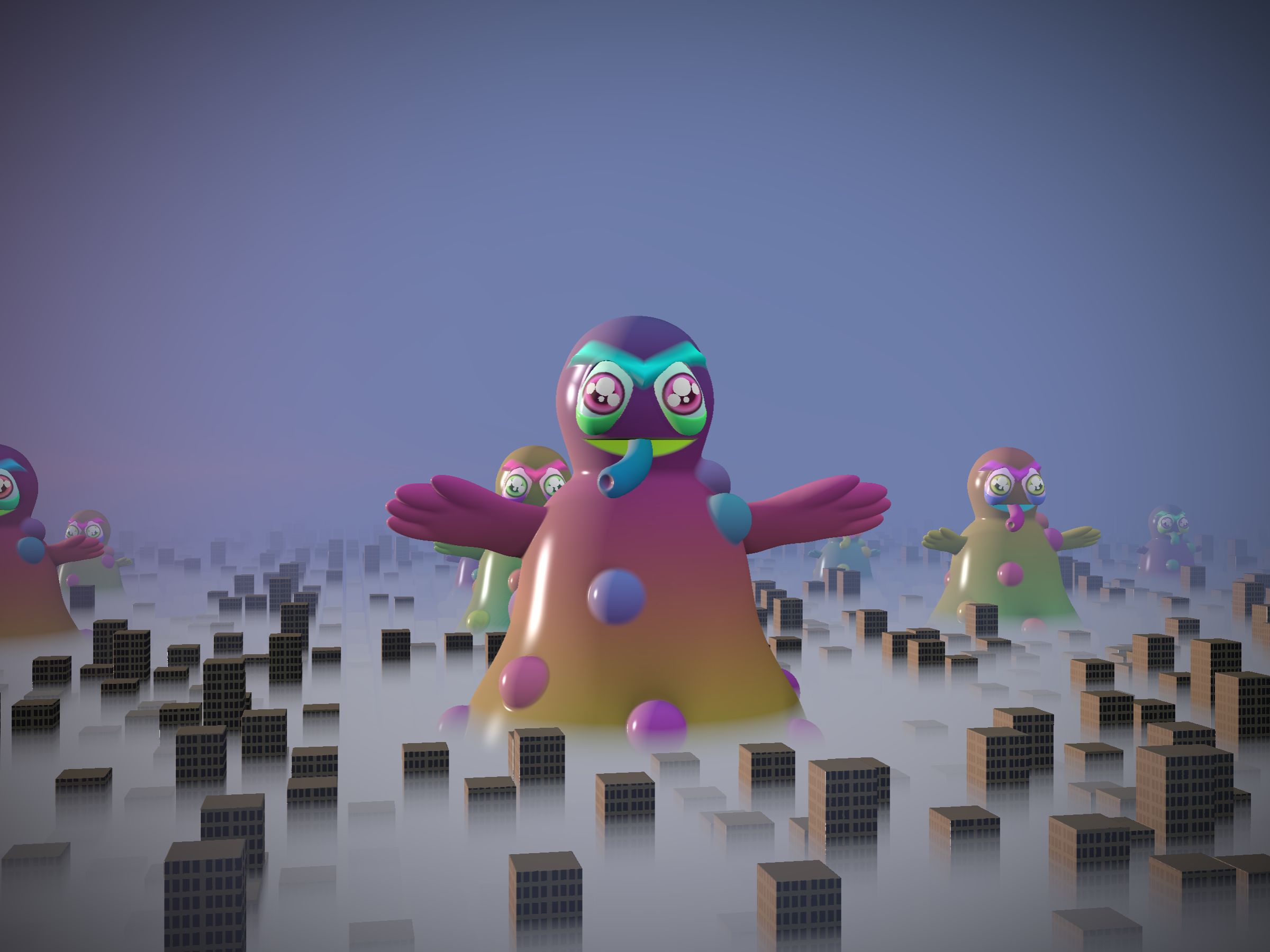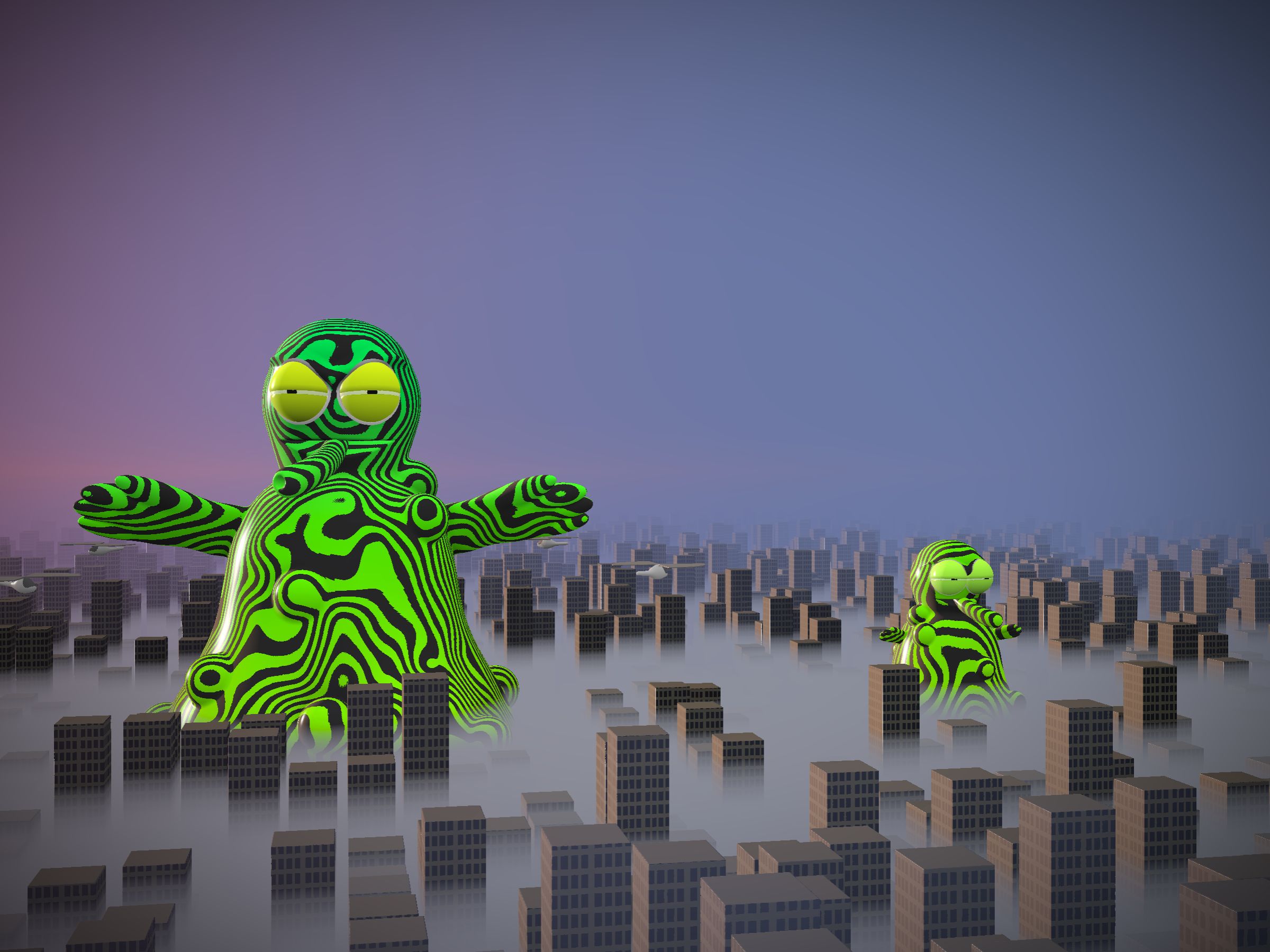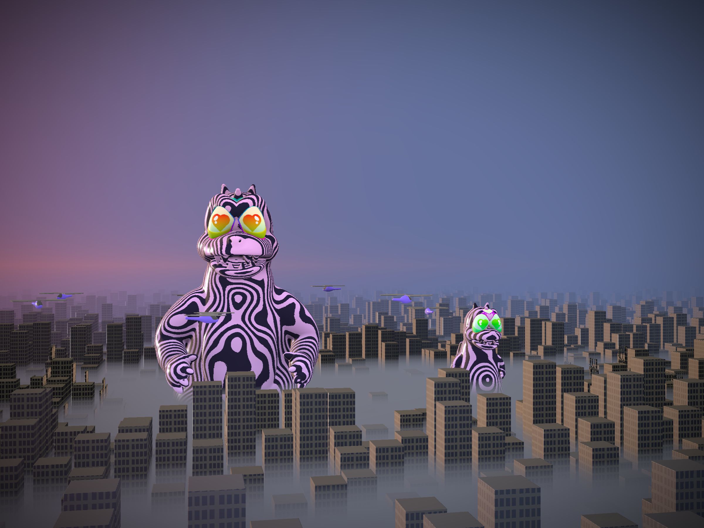 Project Description: Woop Woop! Run for your life! Kai-Gen are attacking! Fresh from the underground and ready to smash your city, these mutant beasties come unique and fired up. No polygons or texture maps here, just sweet ray-marching magic living right on-chain. When you're ready, press the 2 key on your keyboard to bring them to life. But be forewarned, animated Kai-Gen are hungry AF and will eat old GPUs like jellybeans. A modern-day PC/Mac desktop is highly recommended, then hit that 2 key, if you think you can handle it... Key 1 = Still, Key 2 = Animated. Let's GOOOOO!