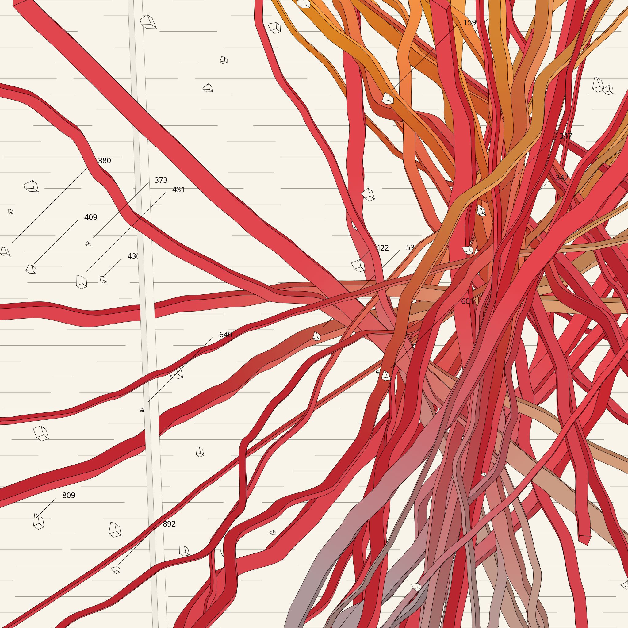 […] unwound in continuous, parallel, straight lines which mean nothing beyond themselves in their constant flow, never meeting, just as we never meet in our constant fall […]”