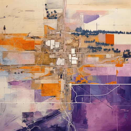 Mappings arose organically through an exploration of generative space and form. Map structures began emerging and with them suggestions of underlying motifs. In this way, the generative AI process exists orthogonally to a traditional observational approach, where an artist begins with a motif. Mappings integrates experience from my personal history including landscape painting, map illustration, data visualization and generative coding, though there was no intention do so when I began the exploration. Mappings includes 8 motifs: Farmland, Aerial, Glacier, Nautical, Night, Parking Lot, Roadways, Suburbia and 19 custom, randomly assigned palettes.