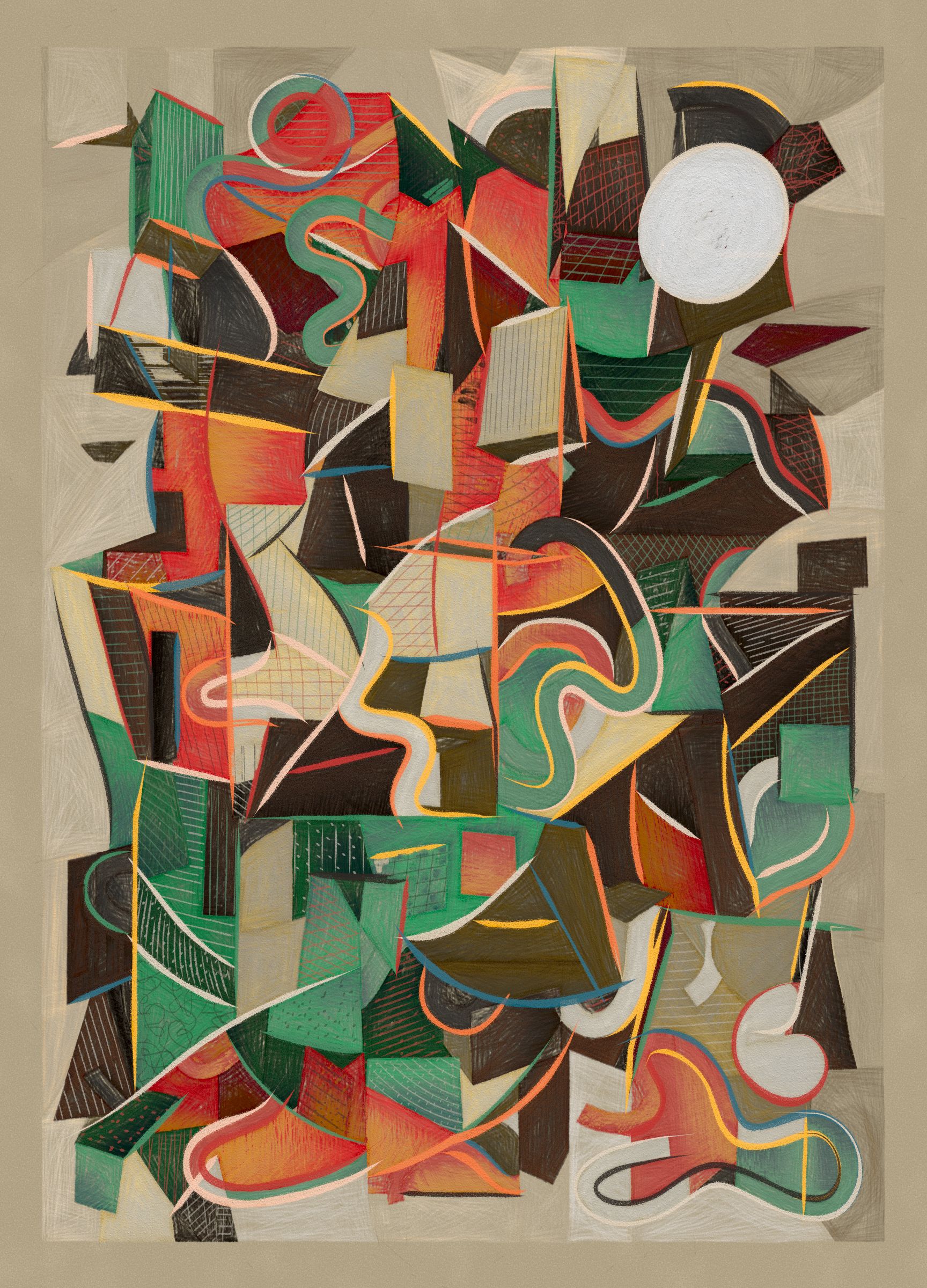 Deconstruction and reconstruction are at the core of this project. Each composition begins with precise construction lines and multiple viewpoints, then is reassembled algorithmically into geometric structures and fragmented planes. The interplay of movement, surface, and texture is directly created through the code.