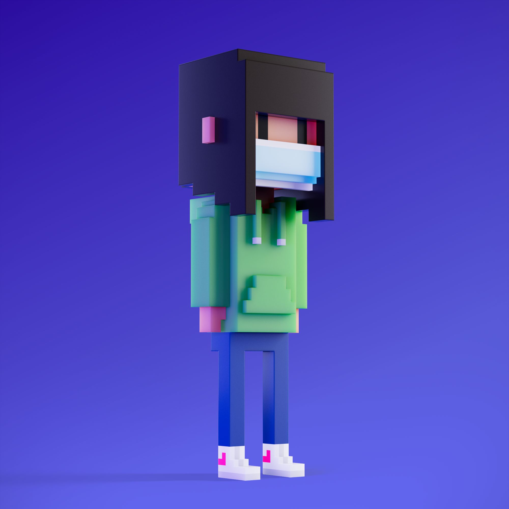 The Meebits are 20,000 unique 3D voxel characters, created by a custom generative algorithm, then registered on the Ethereum blockchain.