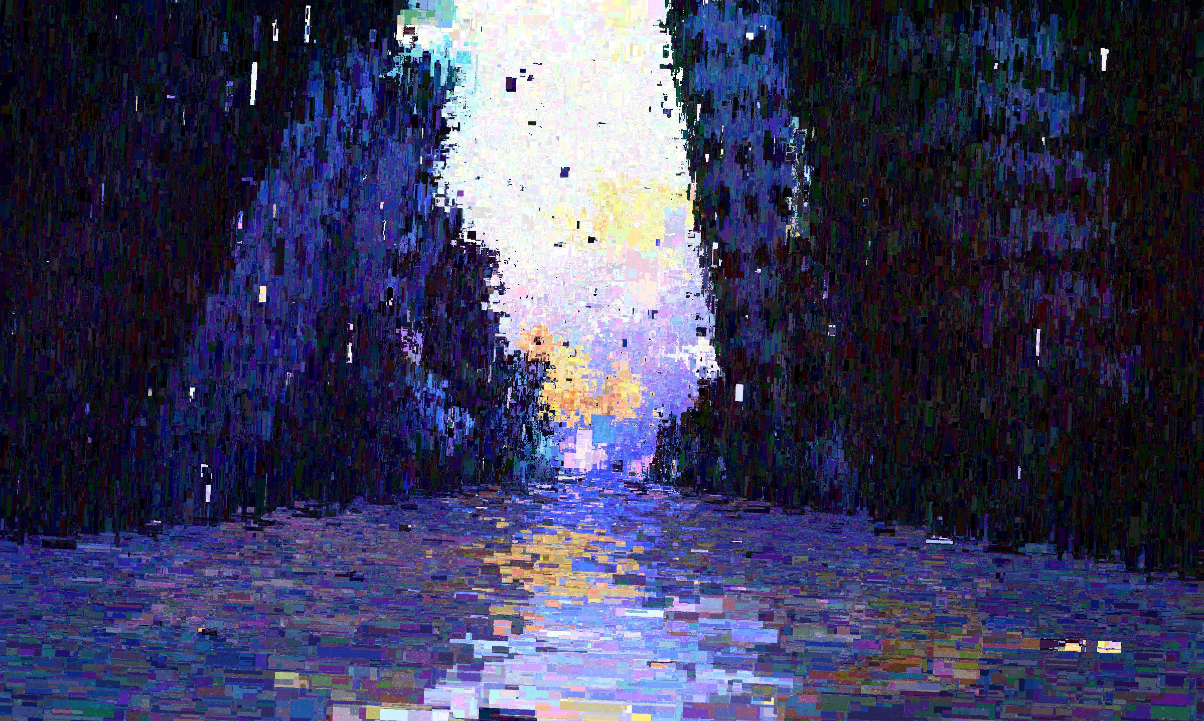 For the visual expression technique, I further pursued and evolved the drawing system that I have developed in "GHOST IN THE CODE" and my other works. Everything is composed of rectangles, indicating that this world is beginning to become low-resolution. Depth is linked to the size of the rectangles, and distant objects are represented by small rectangles as if they were in focus. Dispersion in the position and color of the rectangles indicate the degree of deterioration of the world. Moreover, the sky, blocks, and the surface of the water are identified and each has its own characteristics.